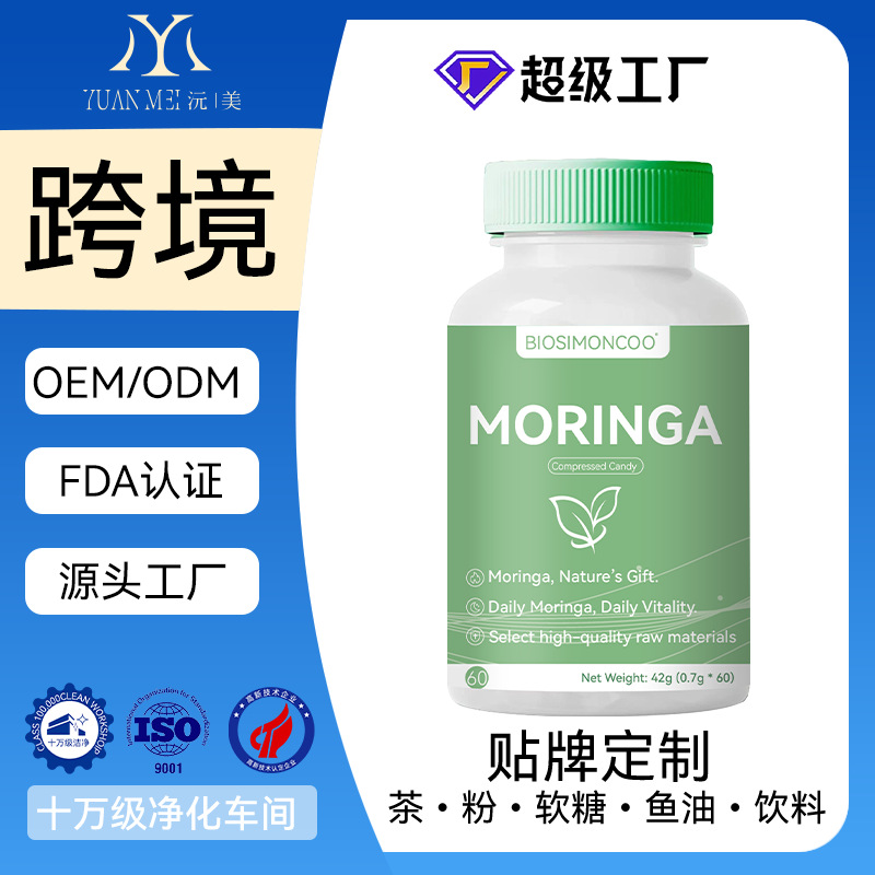 跨境TK热销亚马逊爆品 辣木叶压片糖果Moringa capsules源头工厂