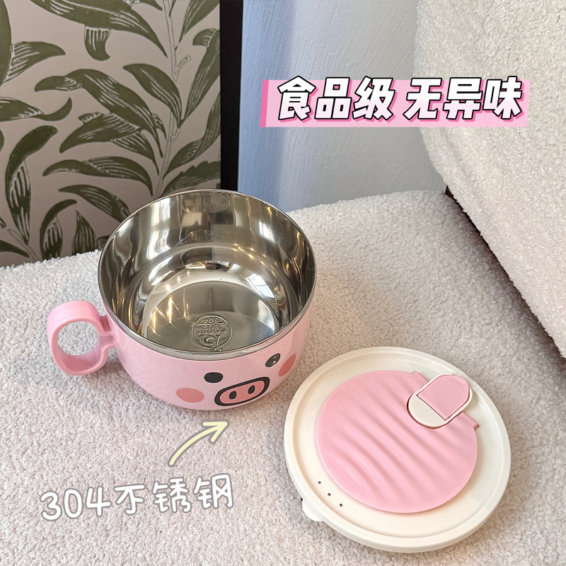 高顔値ins風304ステンレス製カップラーメン製高圧鍋型蓋付き学生寮かわいい大容量茶碗