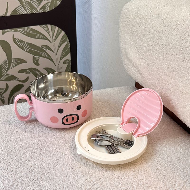 ハニーベア蓋付きカップラーメンお椀かわいい学生寮アニメ大容量304ステンレス弁当弁当箱