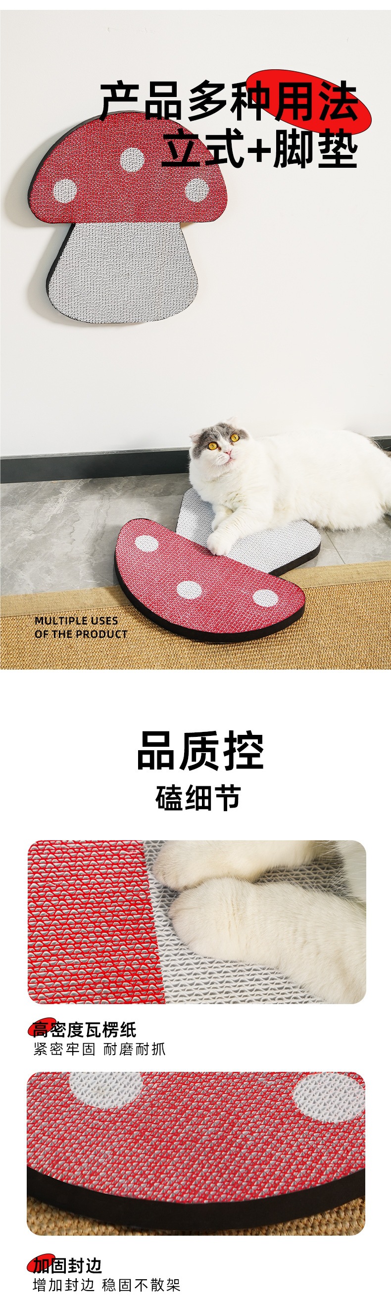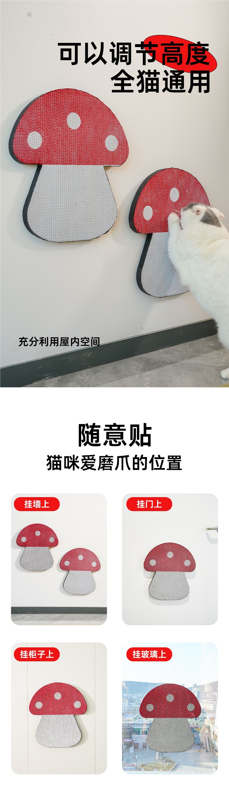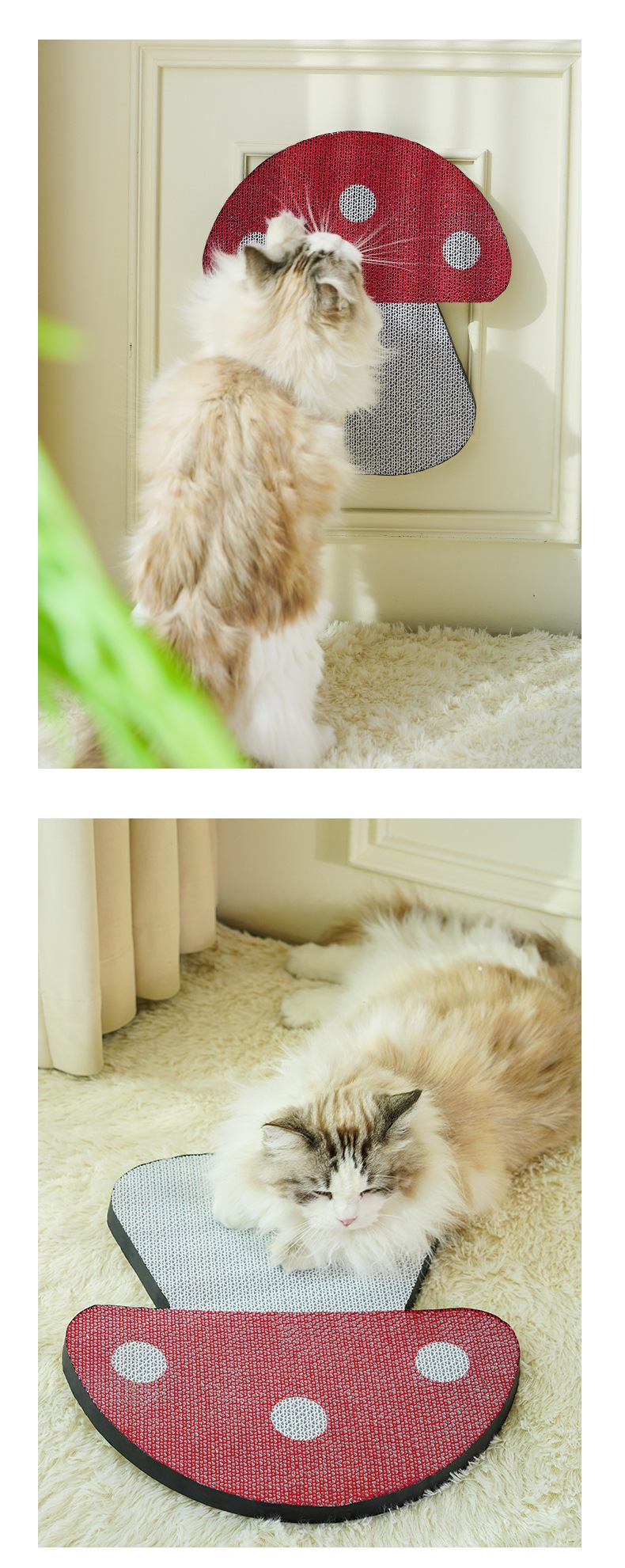 白い猫つかみ段ボール印刷壁赤キノコ猫爪板が落ちない耐摩耗爪玩具