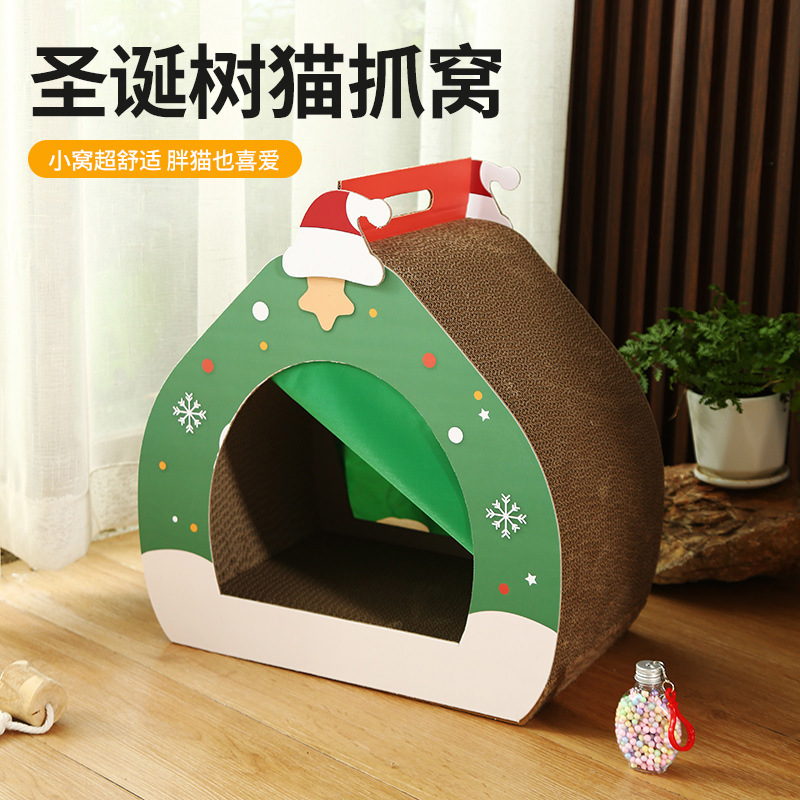 新款圣诞造型二合一猫窝猫抓板猫磨抓猫玩具猫抓板瓦楞纸猫玩具