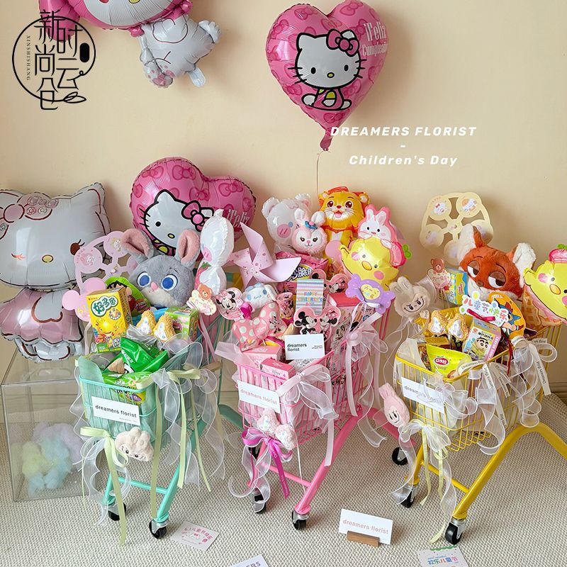 新しい六一子供の日の高颜値ショッピングカートの人形プレゼントかわいい漫画の美しい花屋の花芸の材料