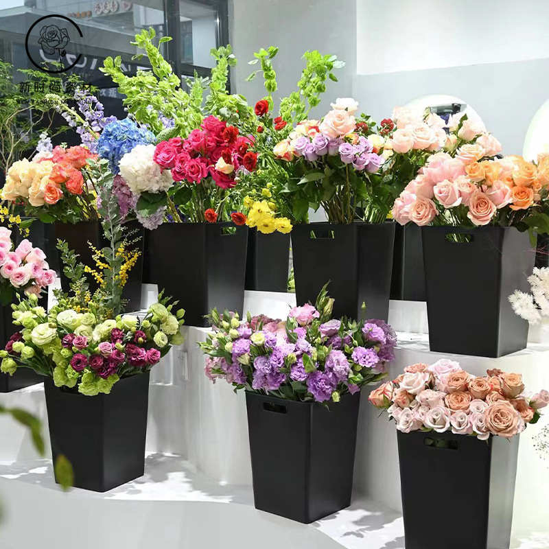 シンプルなダブルハンドルの花のバスケットの箱の花の花束は鉢植えの贈り物の箱の花の芸のバラの花の手提げの包装箱を持ちます。