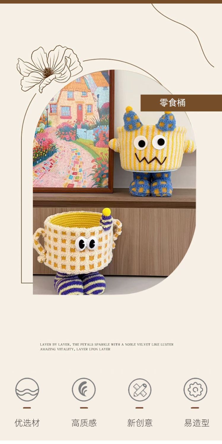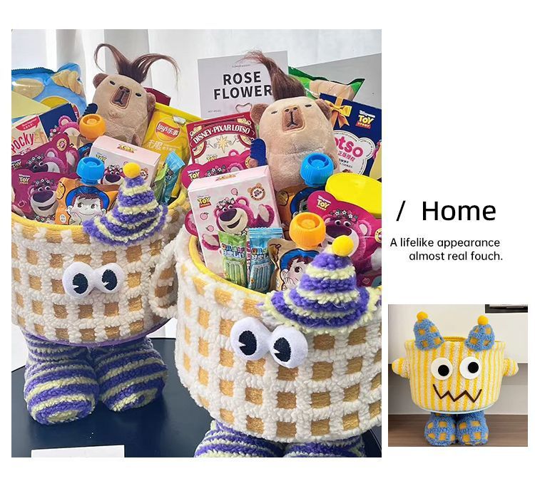 アイスクリームモンスタードーパミン綿ロープ漫画リビングルームデスクトップ装飾品家庭用子供のスナック雑貨収納バスケット
