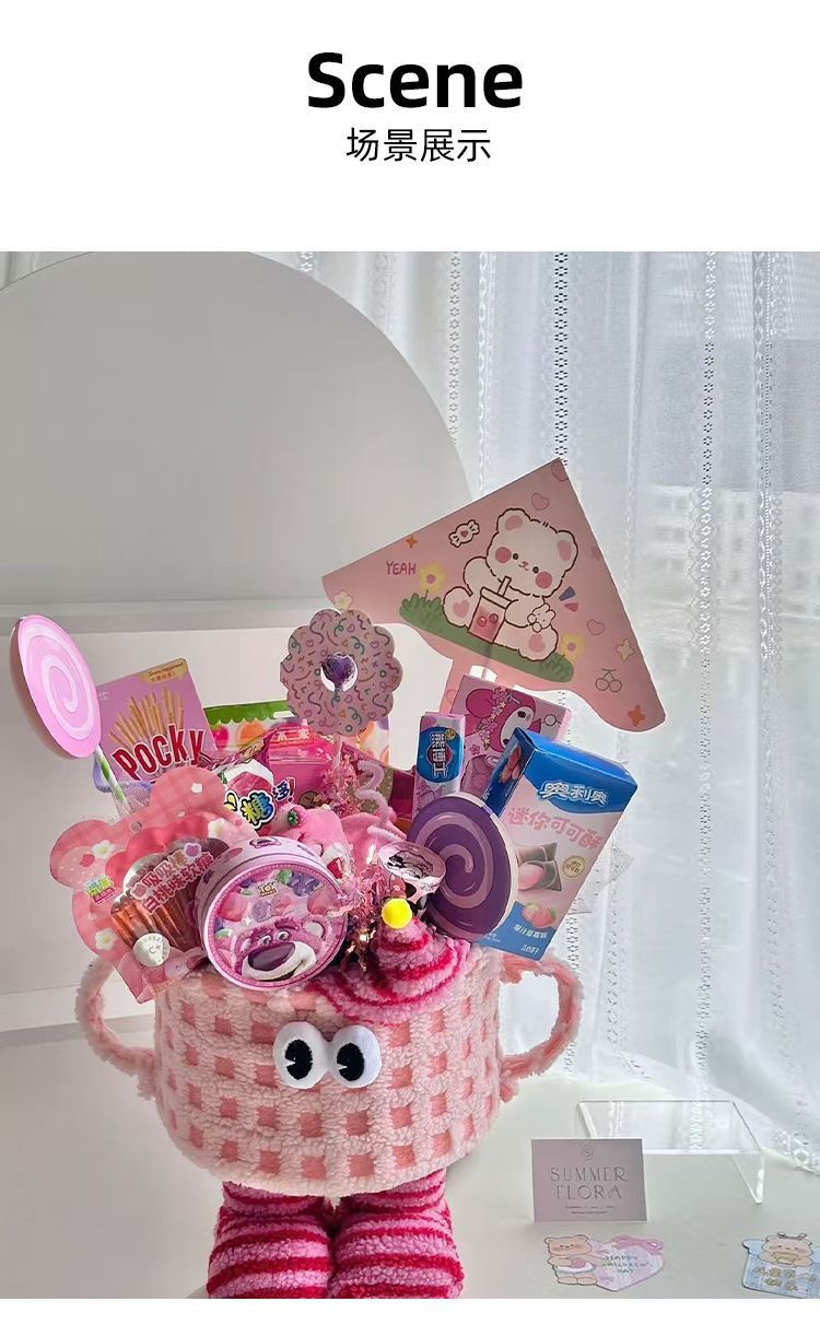かわいいスナックバケツリトルモンスターぬいぐるみ漫画ハグバケツdiy花材卸売フラワーショップ材料メーカー