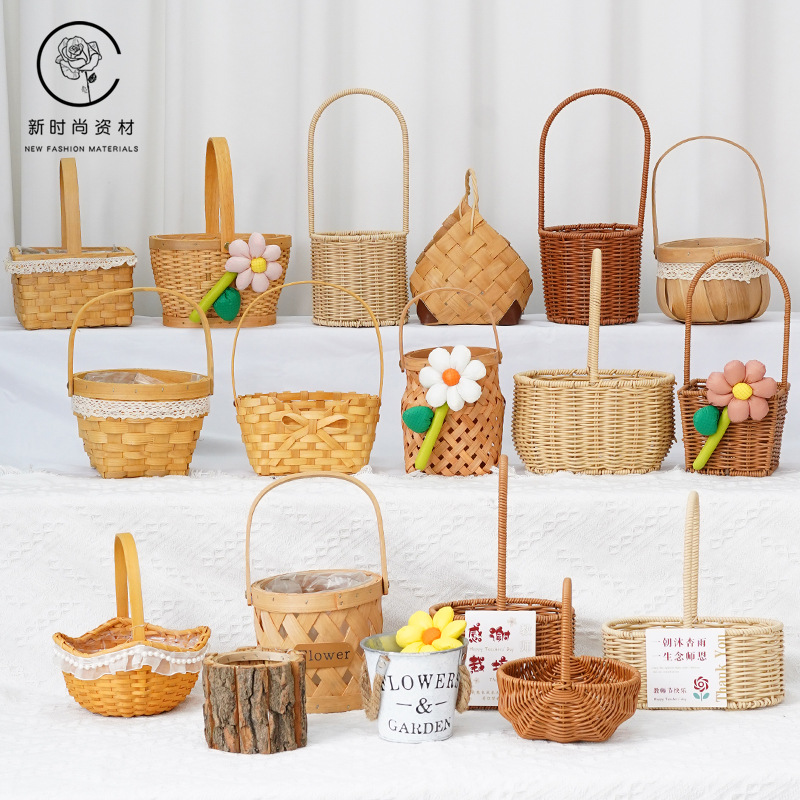 田園風インスタイルのヨーロピアンクリエイティブ手作り籐編み竹編みフラワーアレンジメント手持ちフラワーバスケット教師の日
