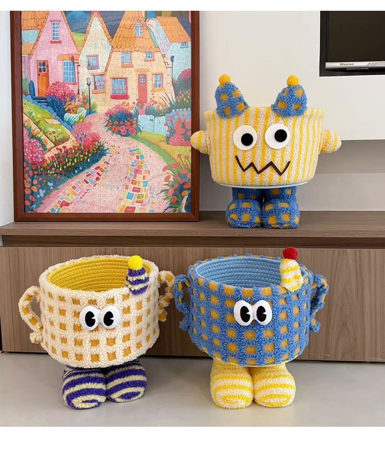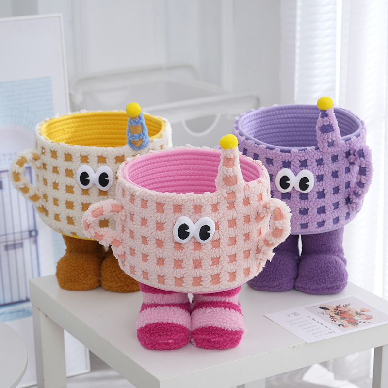 中型ギフト家庭用装飾品、純粋な漫画の収納バスケット、ラムウールコットンロープおもちゃ、小さなモンスター収納バスケット