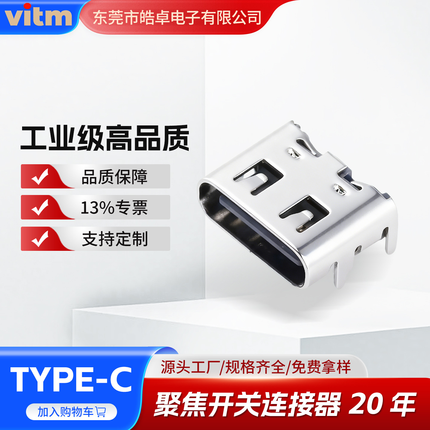 USB3.1-typeC横型母座TYPE-C 6p四脚差込母座コネクタC口母座