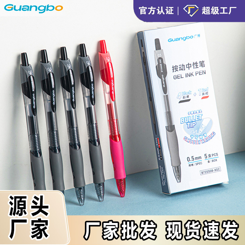 广博按动中性笔0.5mm顺滑签字笔黑色学生考试刷题笔 黑色水笔批发