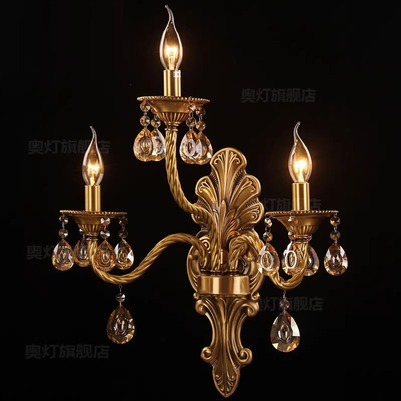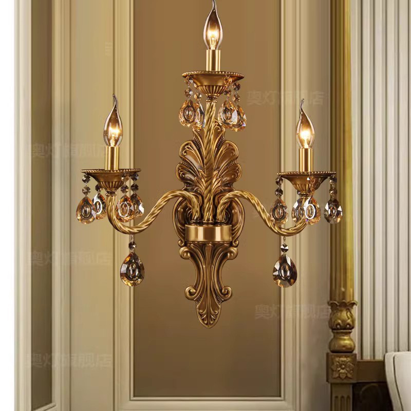 ヨーロッパ式の全銅の客間の壁の明かりのフランス式の水晶の寝室の背景の壁のベッドの階段の壁の明かりの鏡の前の通路の照明器具