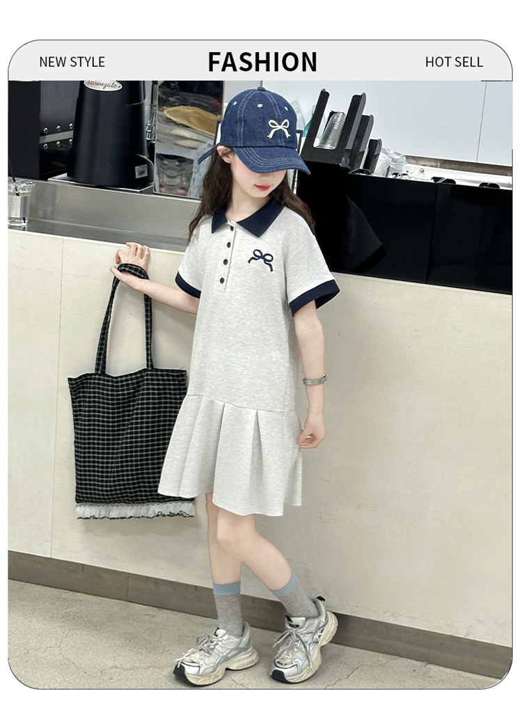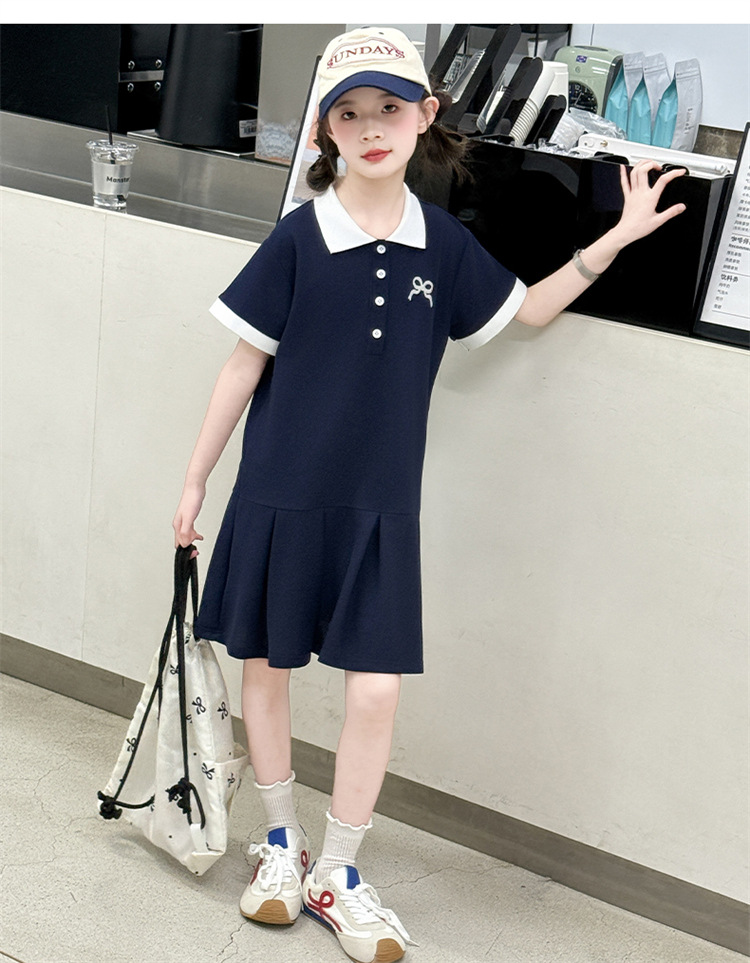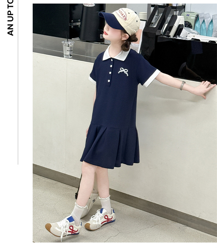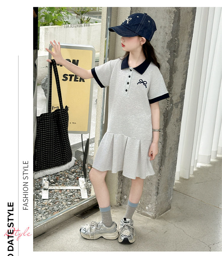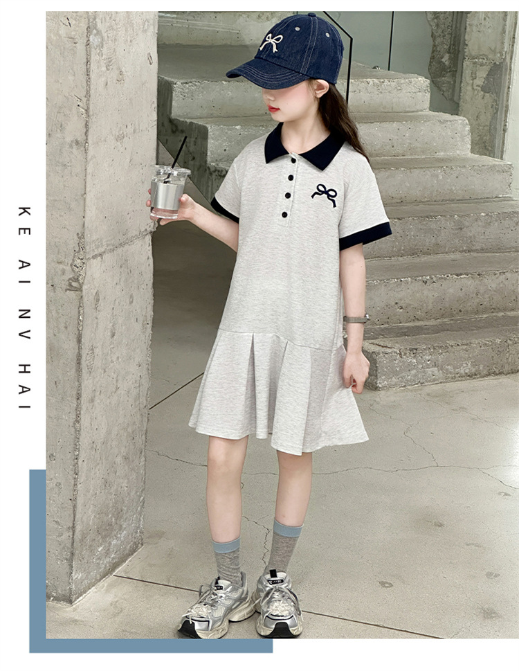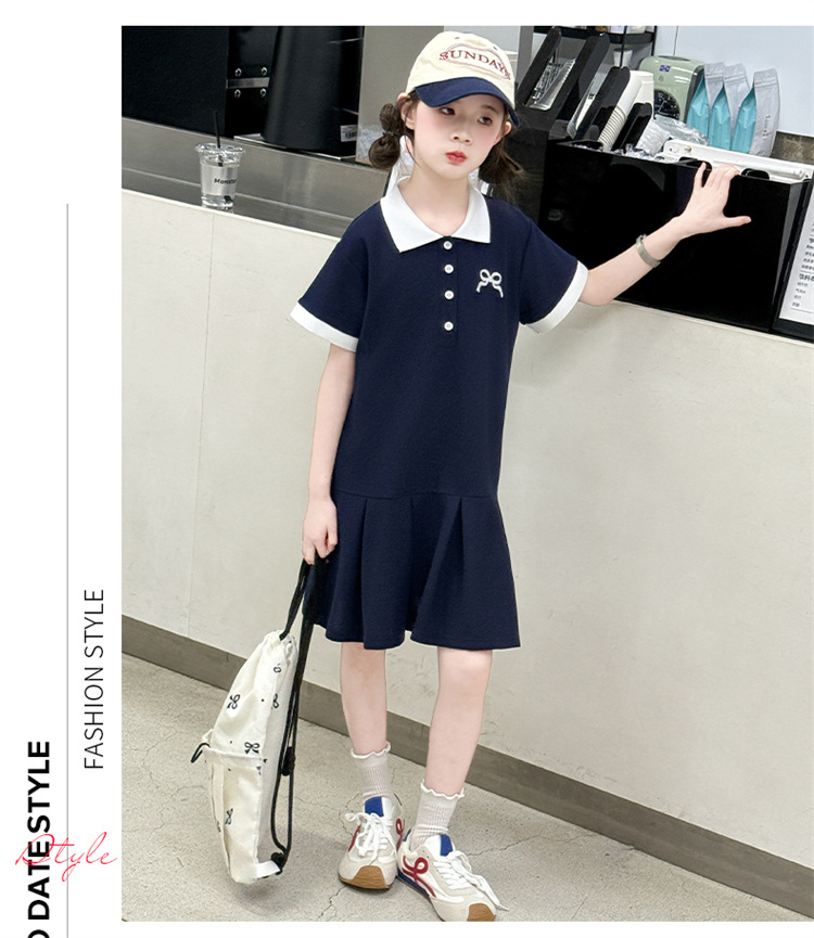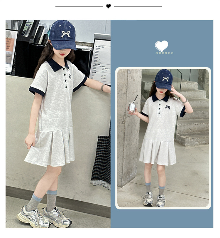女の子ドレス 2025 夏の新スタイル韓国スタイルカジュアルポロスカート子供の夏薄いスカート