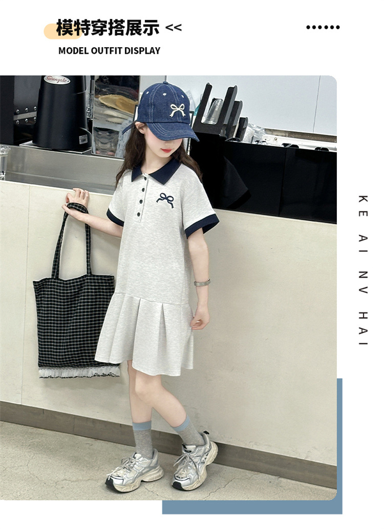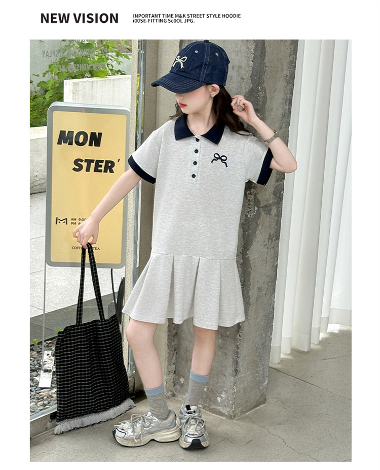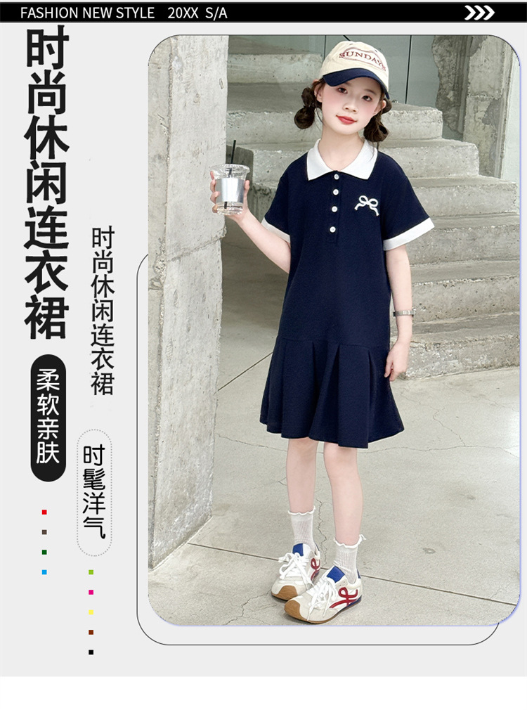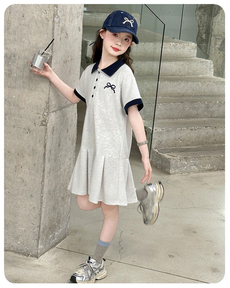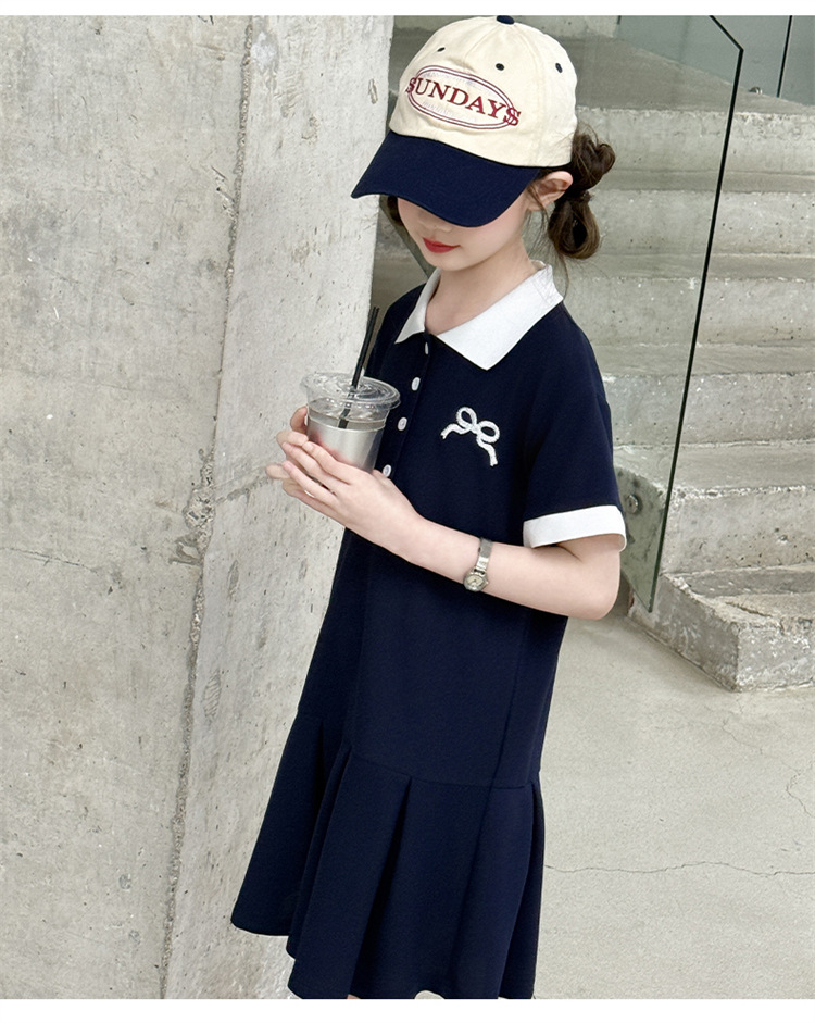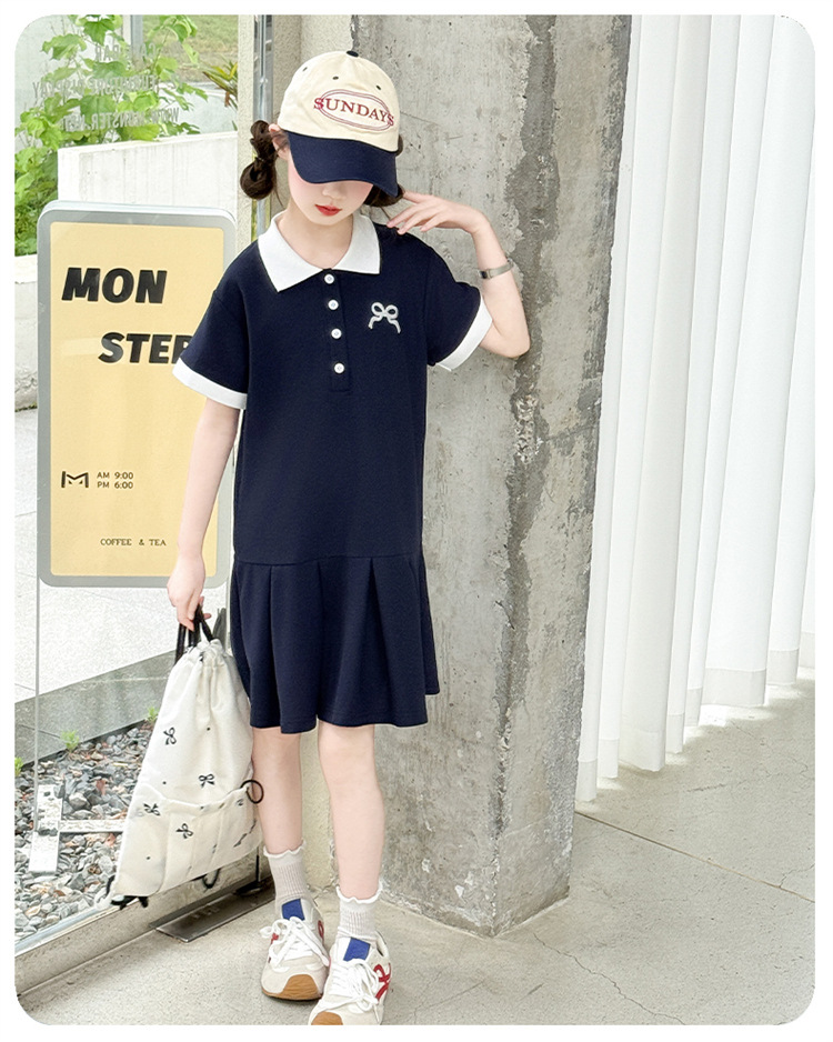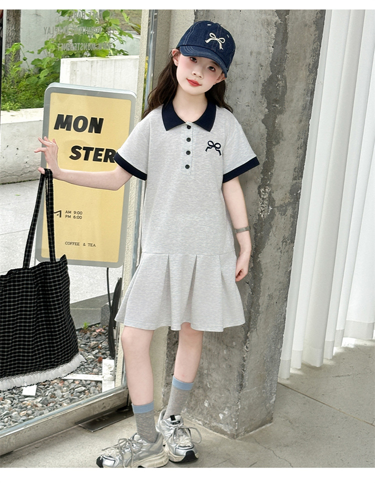 女の子ドレス 2025 夏の新スタイル韓国スタイルカジュアルポロスカート子供の夏薄いスカート