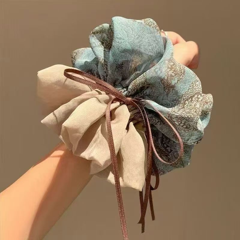 韩系复古雪纱大肠发圈高级感气质扎丸子头绳洋气设计渐变色橡皮筋