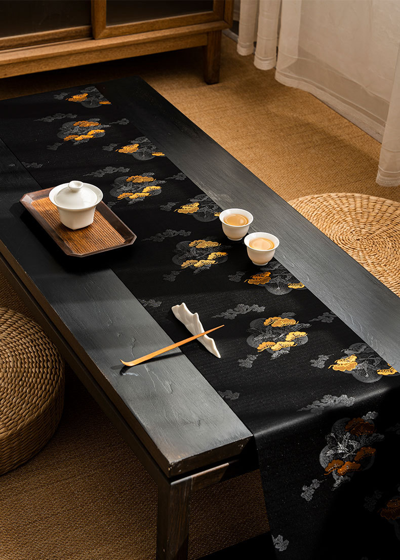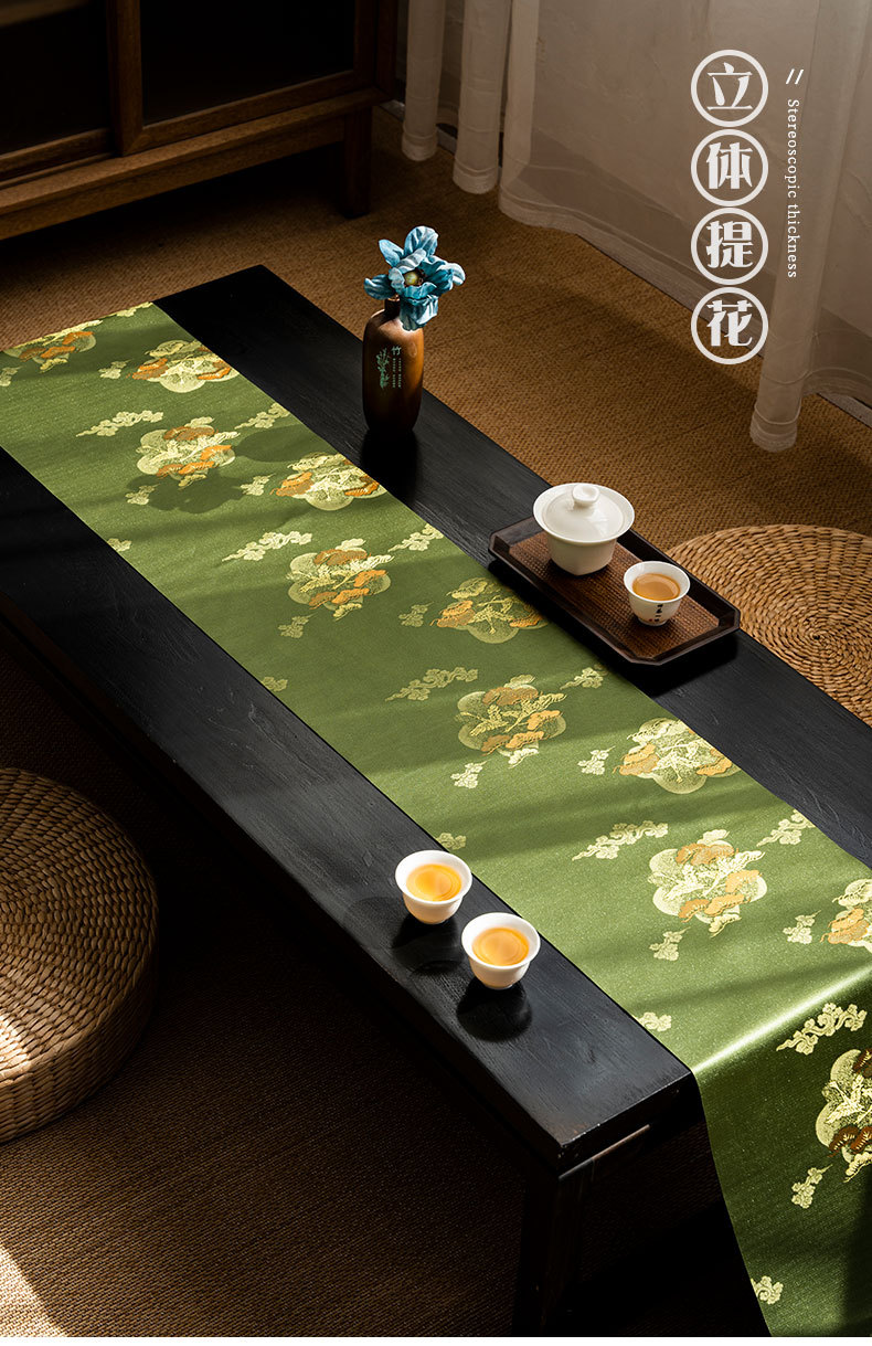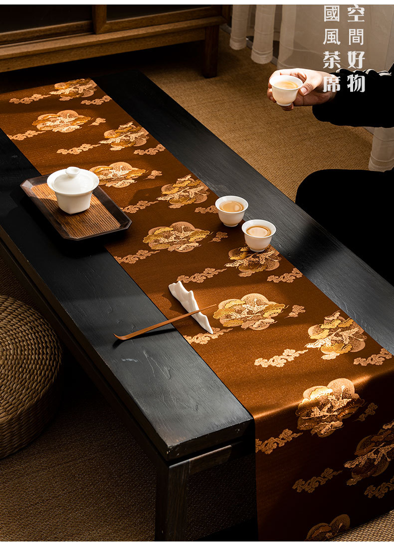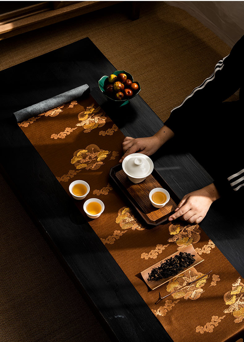 織錦雲松茶席新中国式禅意長条茶テーブルクロス高級軽豪華家庭用滑り止めテーブル旗茶テーブルマット