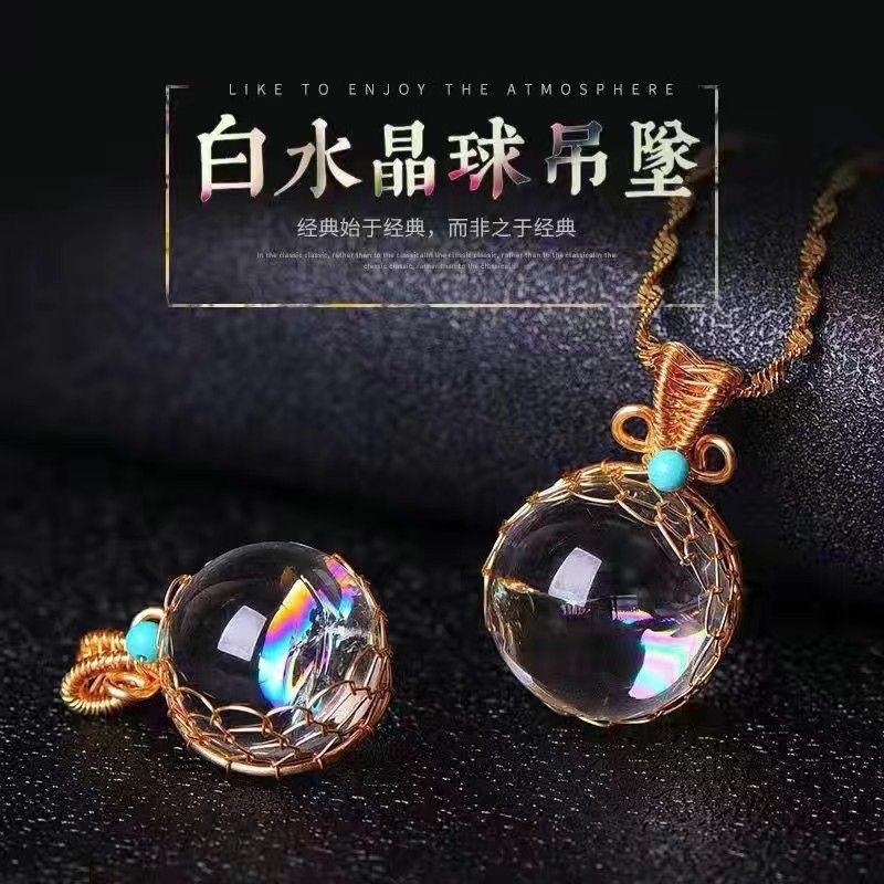 原石ホワイトクリスタルボールペンダントヒマラヤレインボーライトボールラウンドボールワイヤービーズペンダントセーターチェーンカップルジュエリー