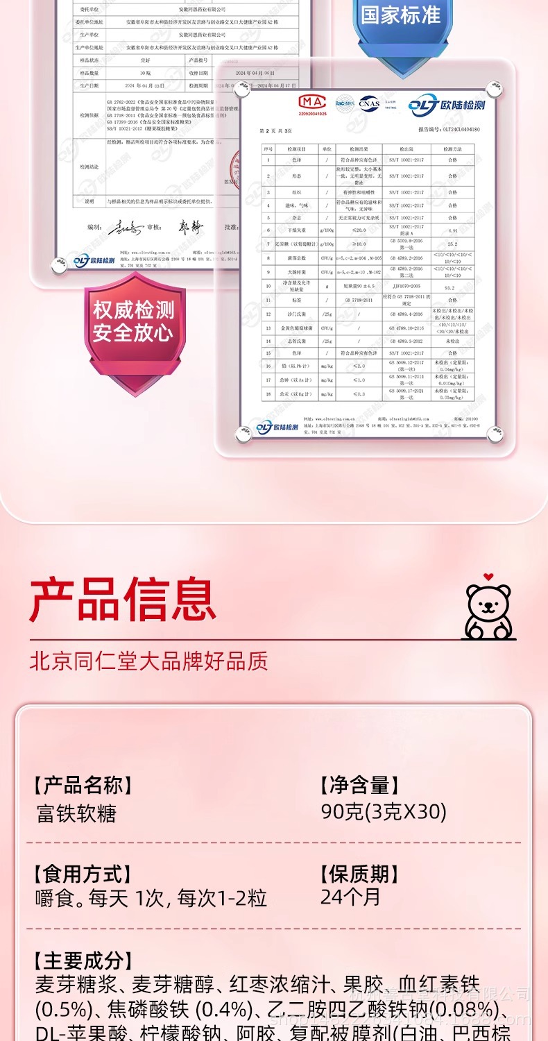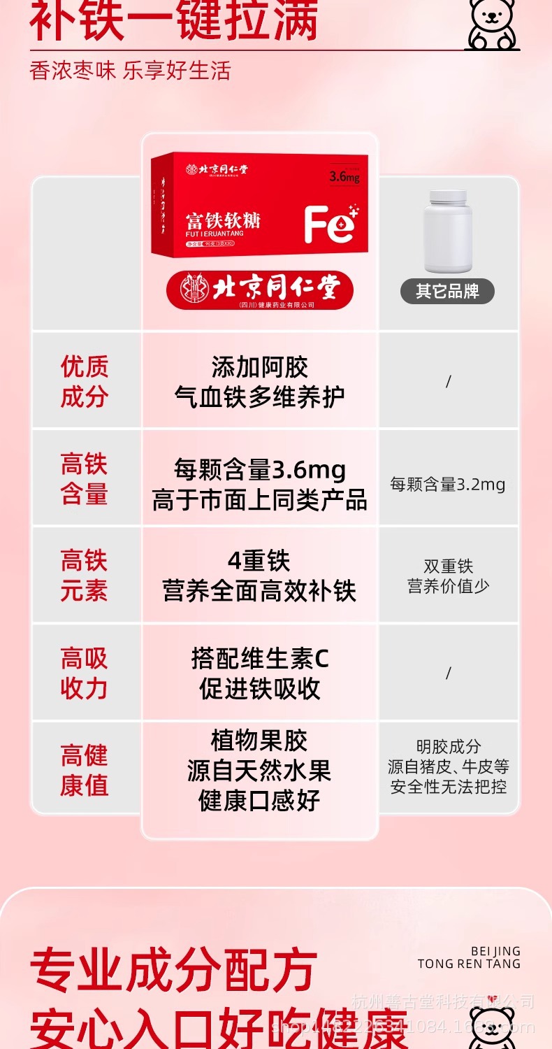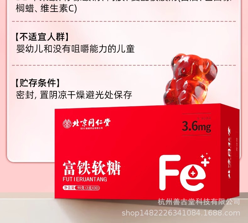 北京同仁堂 鉄分豊富グミ サプリメント 青少年・子供・大人・妊婦向け 鉄分補給 鉄微量元素 正規品 卸売