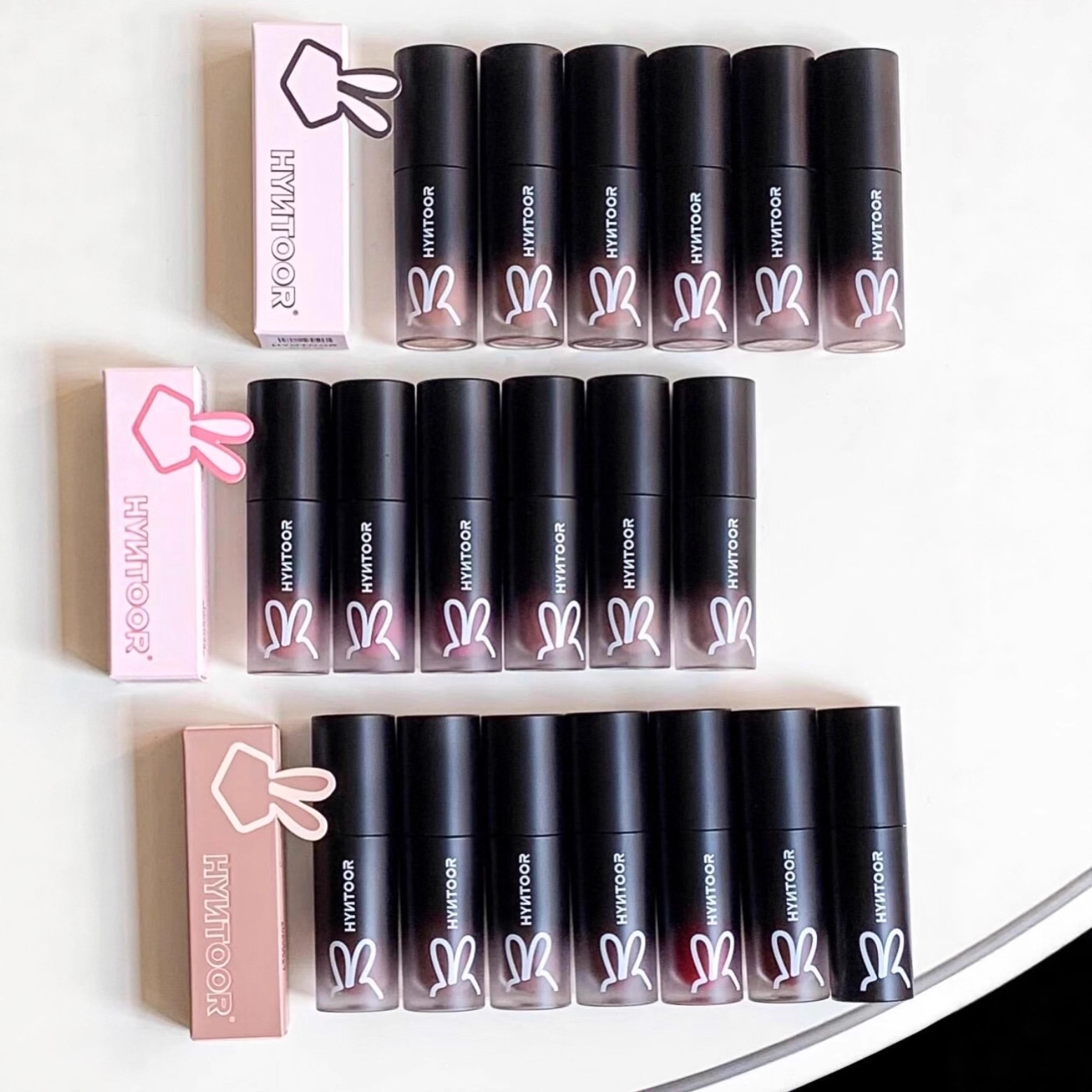 新品 ~ HYNTOOR黒兎マカロン唇泥マットベルベット肌粉霧面唇釉薬白裸口紅