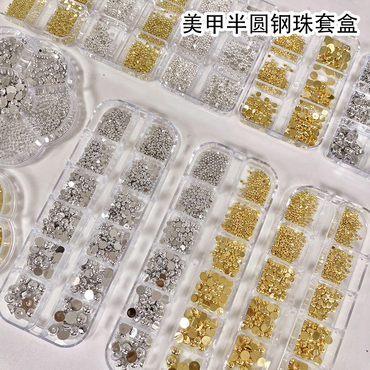 新款混装半圆钢珠6格盒套装百搭可diy金银双色拼装穿戴甲配件批发