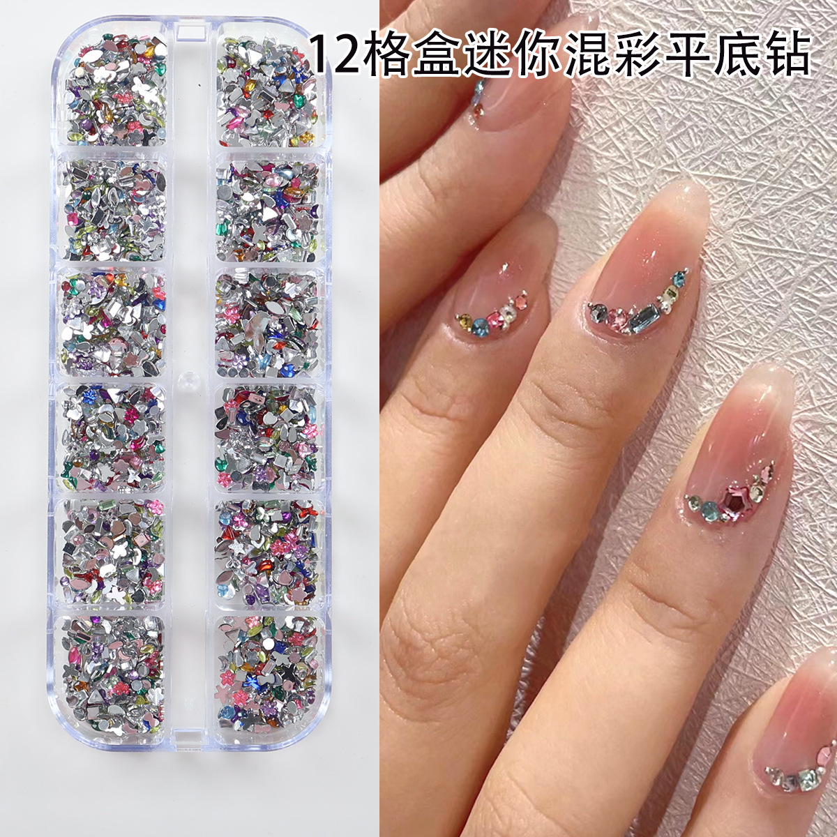 跨境欧美指甲平底钻AB异形钻12格盒混装美甲水晶玻璃钻美甲饰品