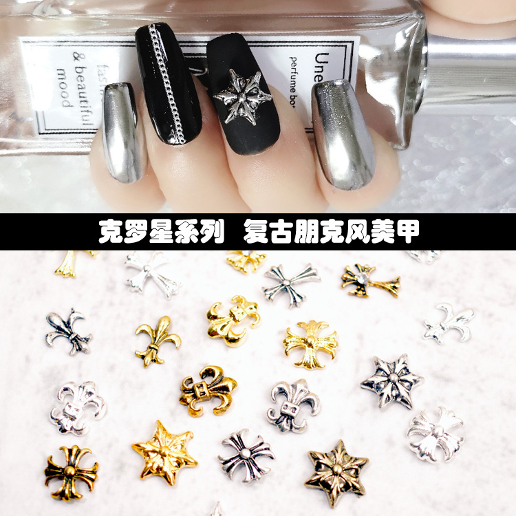 クロウハート風レトロダイヤモンドクロスネイルアートアクセサリー 欧米パンク風合金卸売 HJ-009 クリスタルダイヤモンド