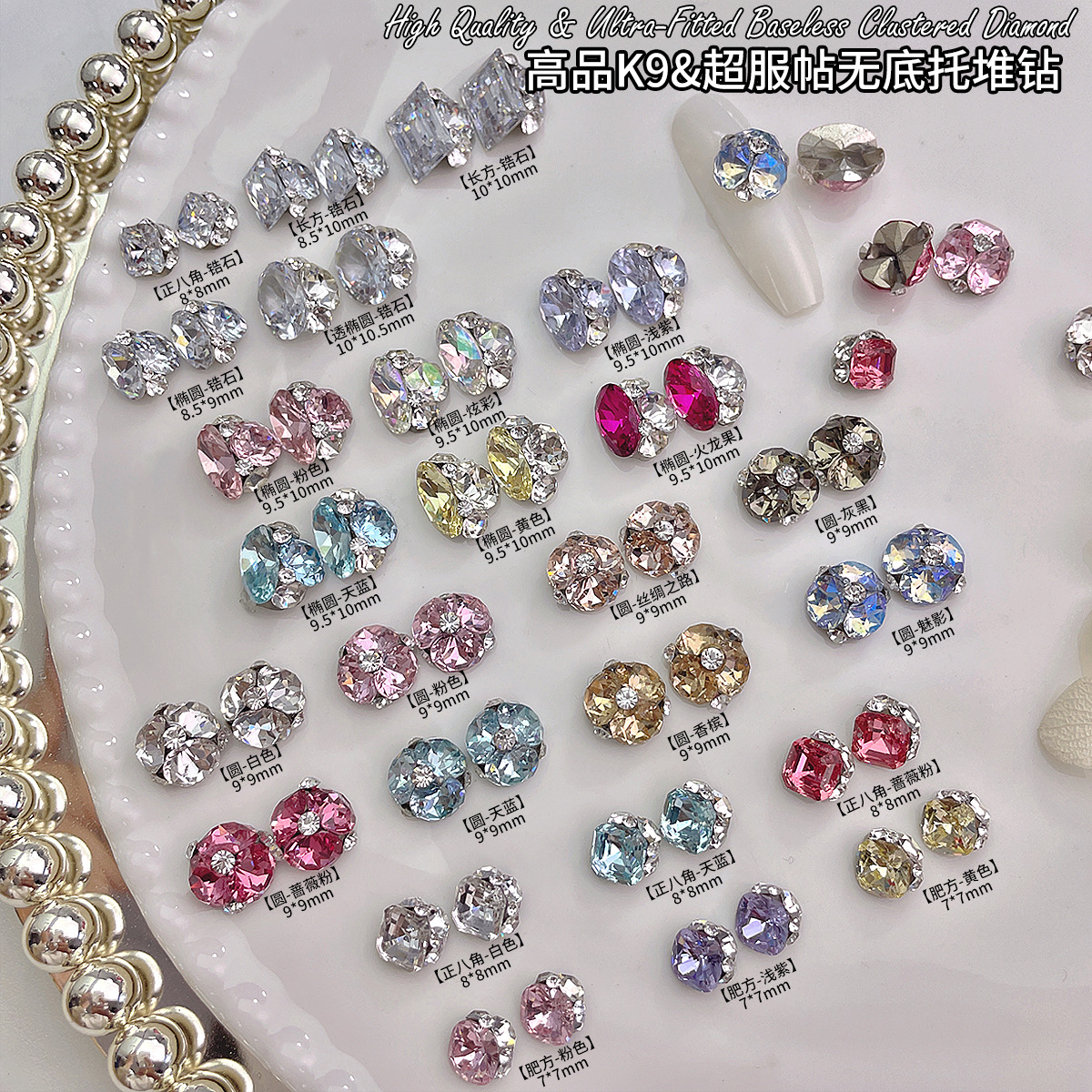 正品爆闪K9堆钻多切面肥方无底托美甲钻饰品冰透玻璃超服帖指甲钻