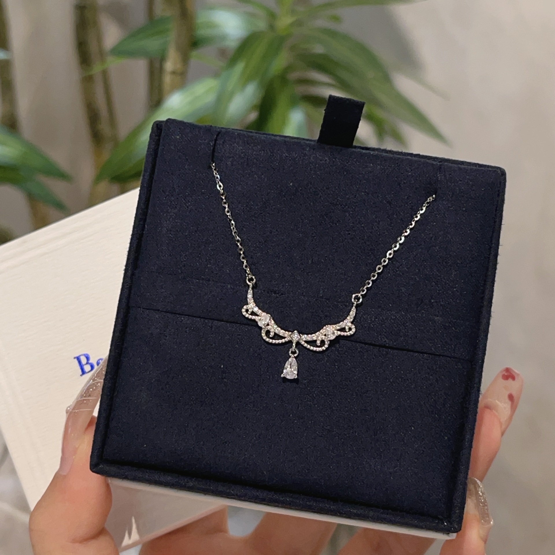 S925纯银蕾丝花边水滴锆石项链女轻奢高级感ins风气质百搭锁骨链