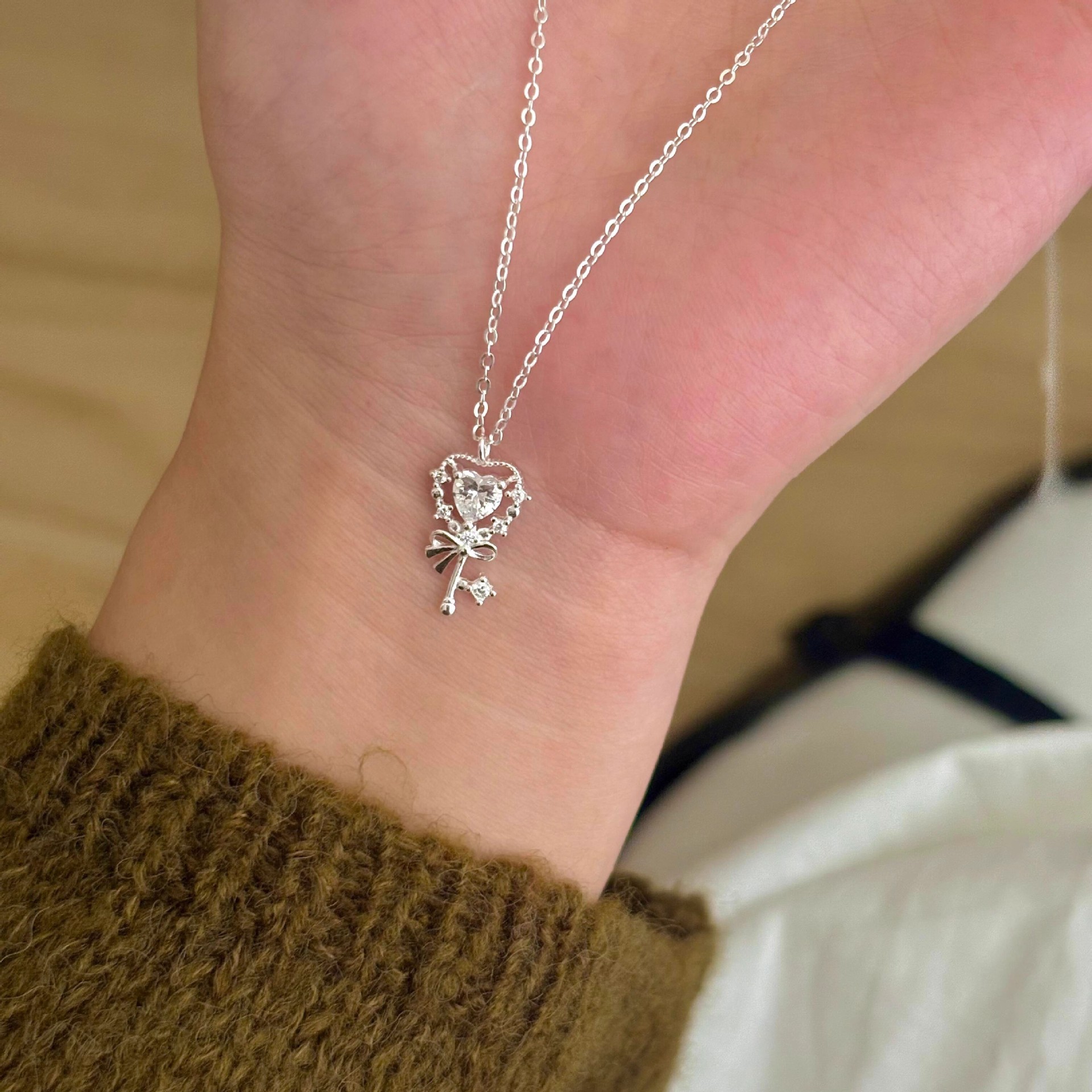 s999足银爱心流苏蝴蝶结项链女高级感心结水滴锁骨链精致送礼