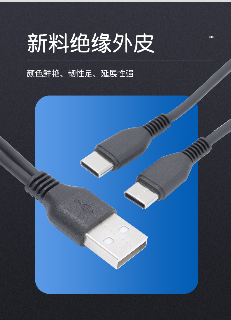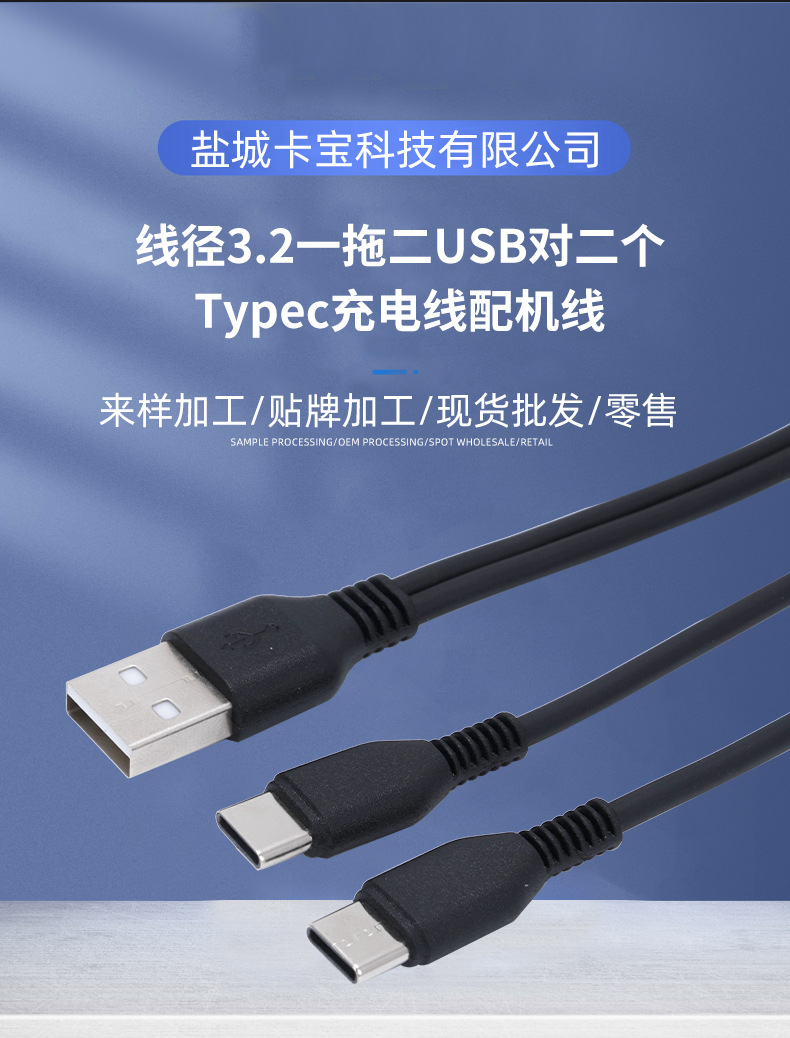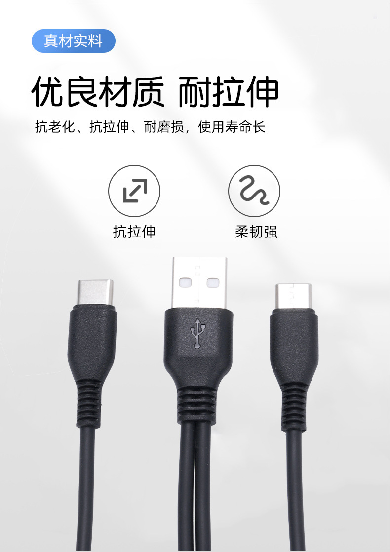 usb转typec一拖二电源线安卓手机音响耳机小家电充电线厂家供应