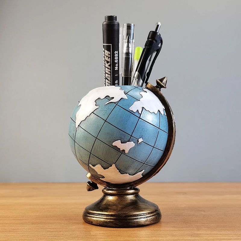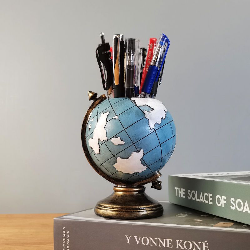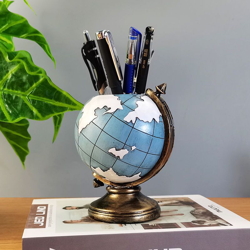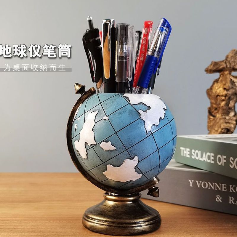 笔筒欧式复古地球仪摆件房间客厅装饰品办公桌面收纳学生礼物批发