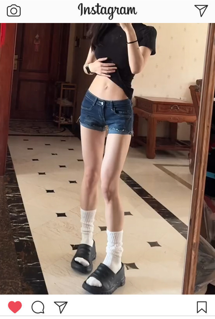 辛いデニムの半ズボンの女性2025夏のギャルのアメリカのレトロな包みの尻の低い腰の熱いのはやせている超短いズボンを現します。