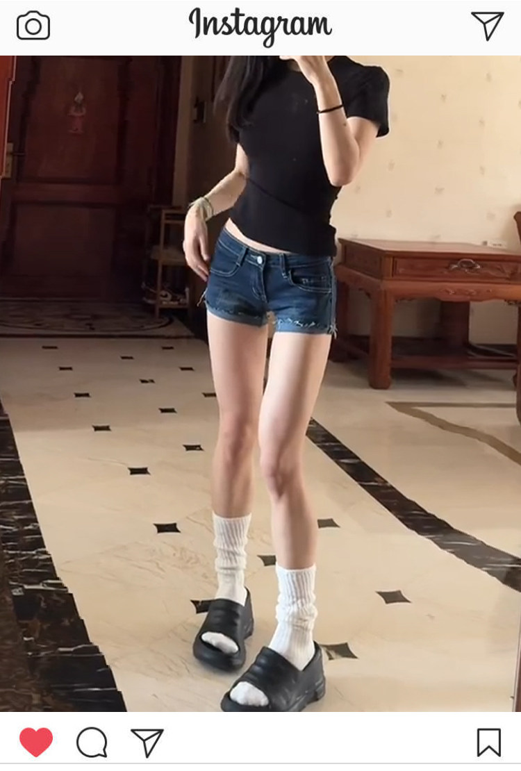 新型ハイウエストのタイツがやせています。2025夏のレトロなお尻のホットパンツは黒いデニムのショートパンツの女性のハイウエストのギャルです。