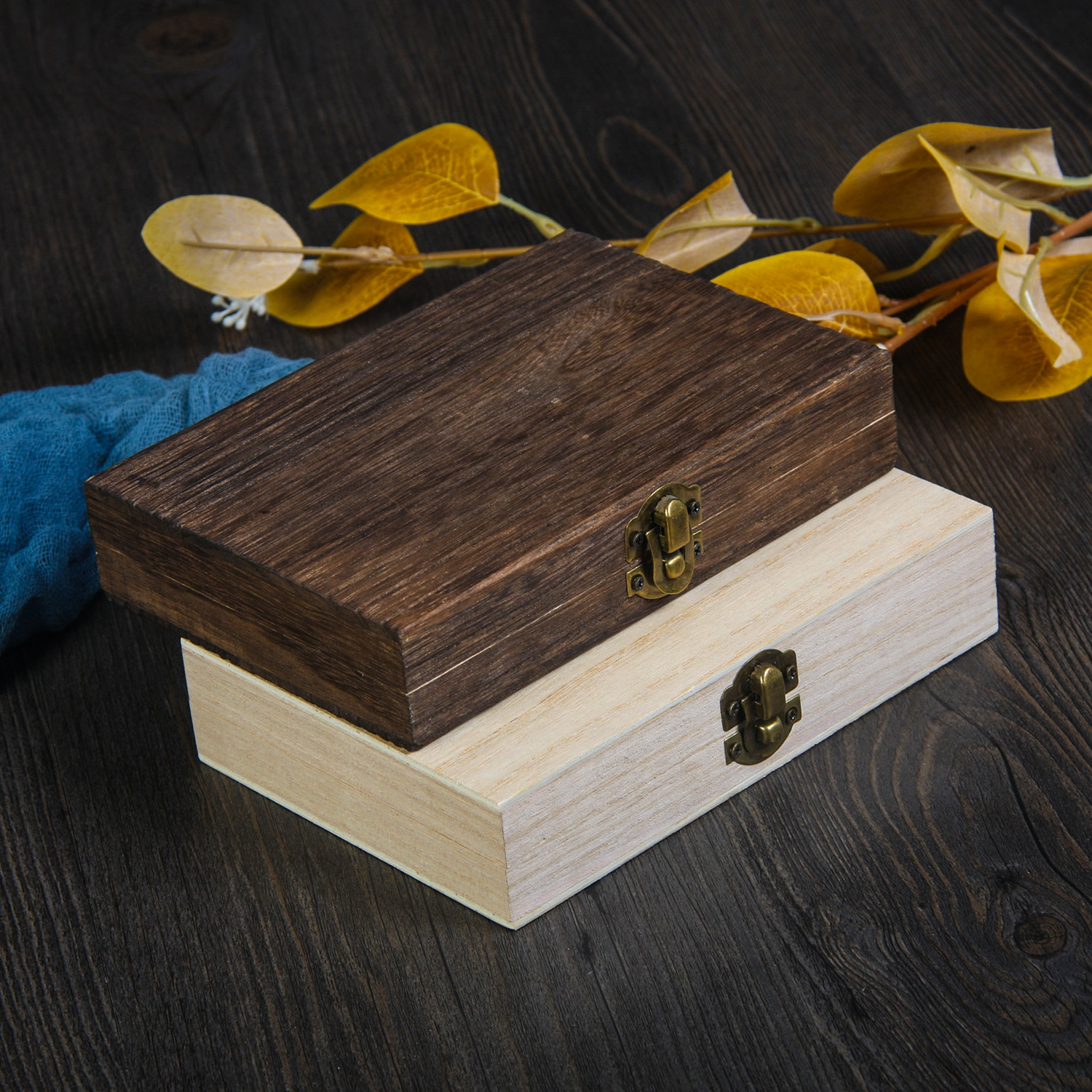 マツ木フリップジュエリーボックス木製ギフト桐木長方形木ボックス収納ボックス防塵ギフトボックスDIY手描き