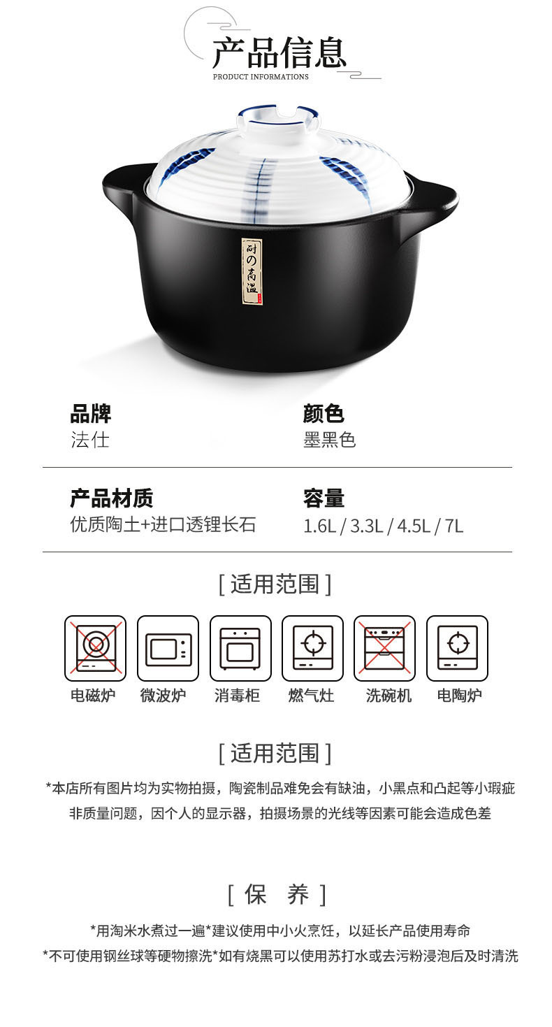 家庭用土鍋ガス高温シチュー鍋セラミック鍋無コーティング汎用ガスコンロ炊飯器