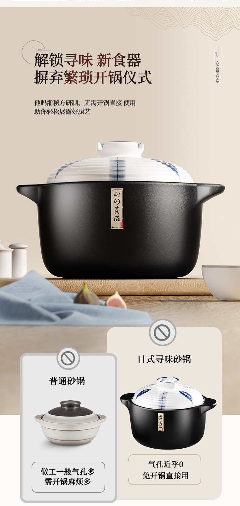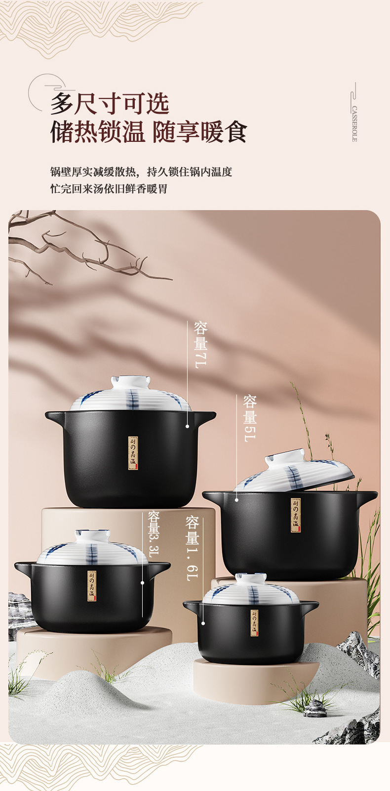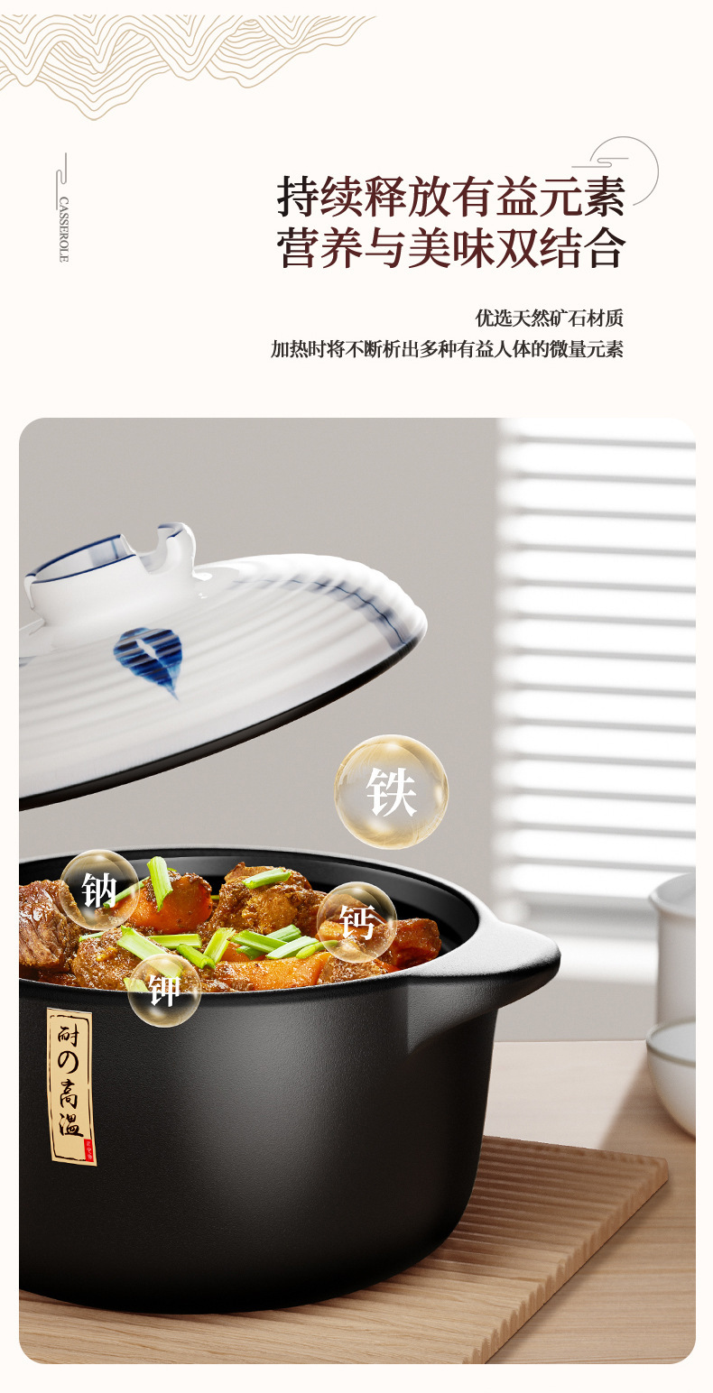 和風キャセロール 家庭用ガスストーブ専用スープシチューポット 業務用高温耐性乾式無割セラミックキャセロール
