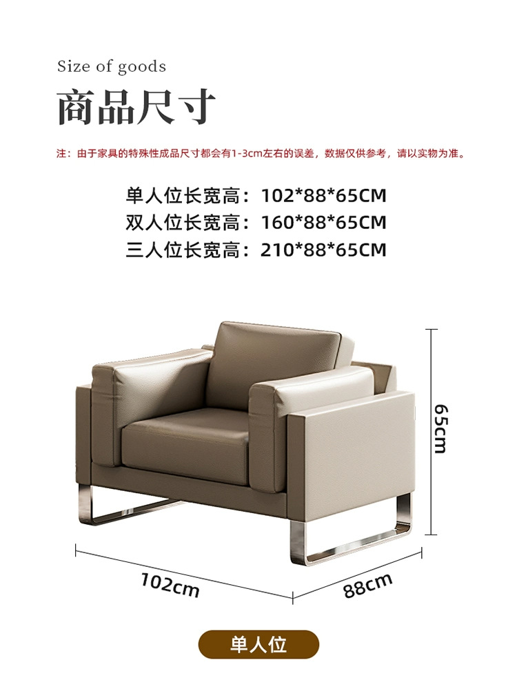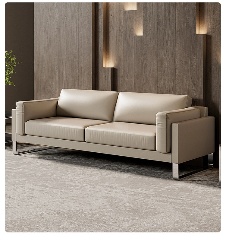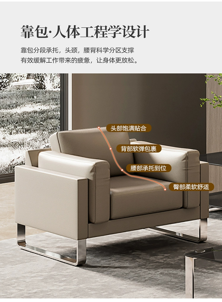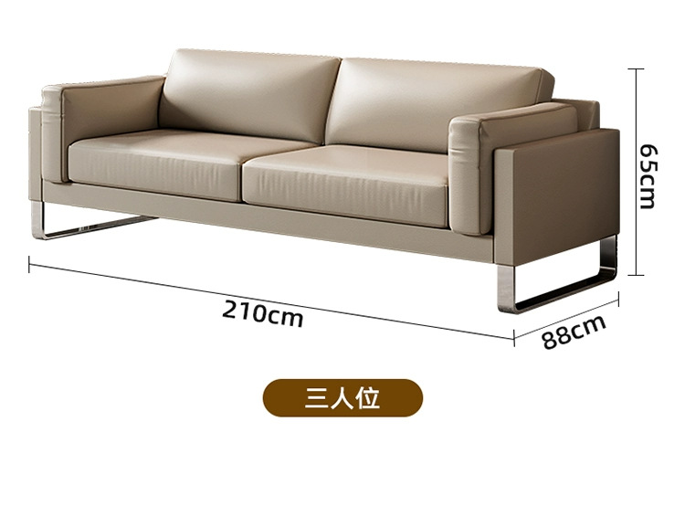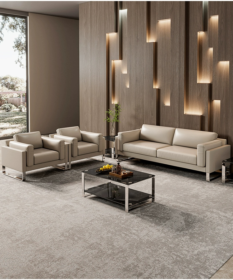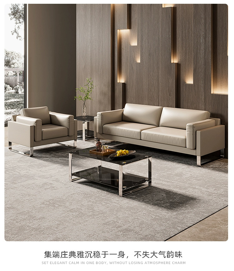 简约现代商务会客办公沙发 意式轻奢三人位真皮办公室沙发茶几