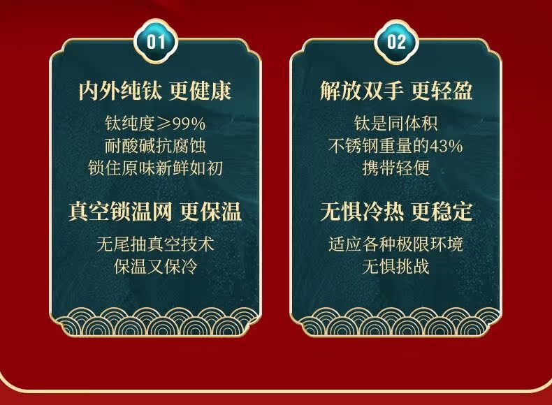 希諾純チタン保温カップ抗菌グラスセットカップルセット
