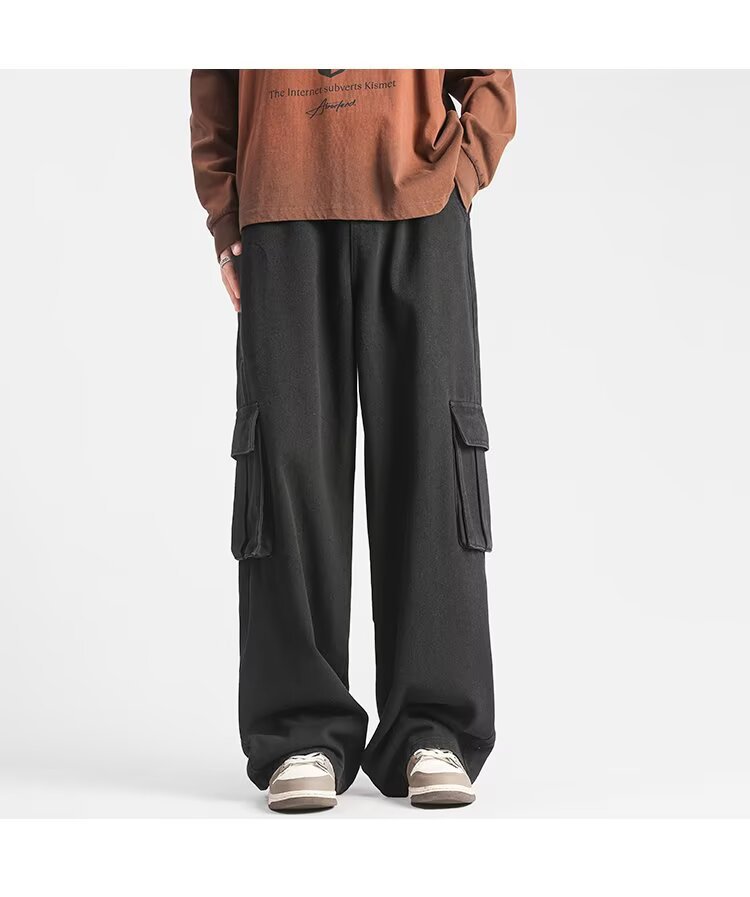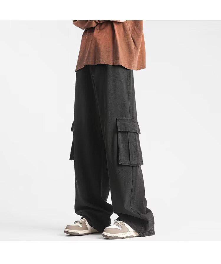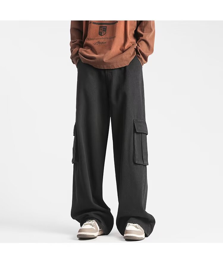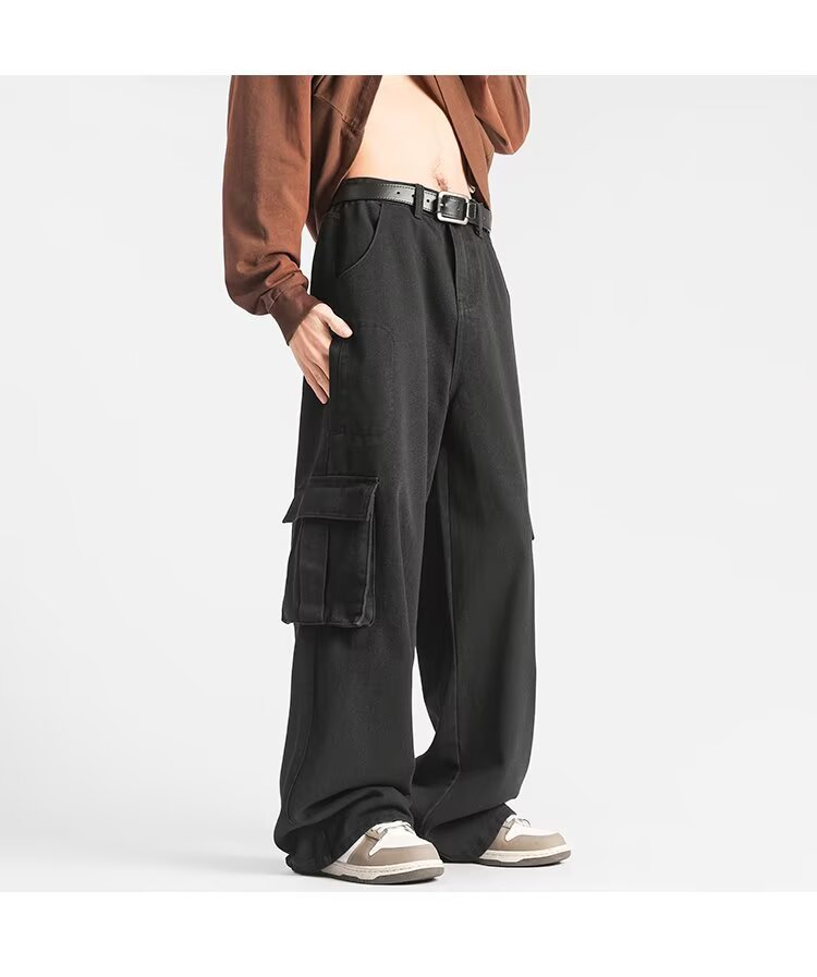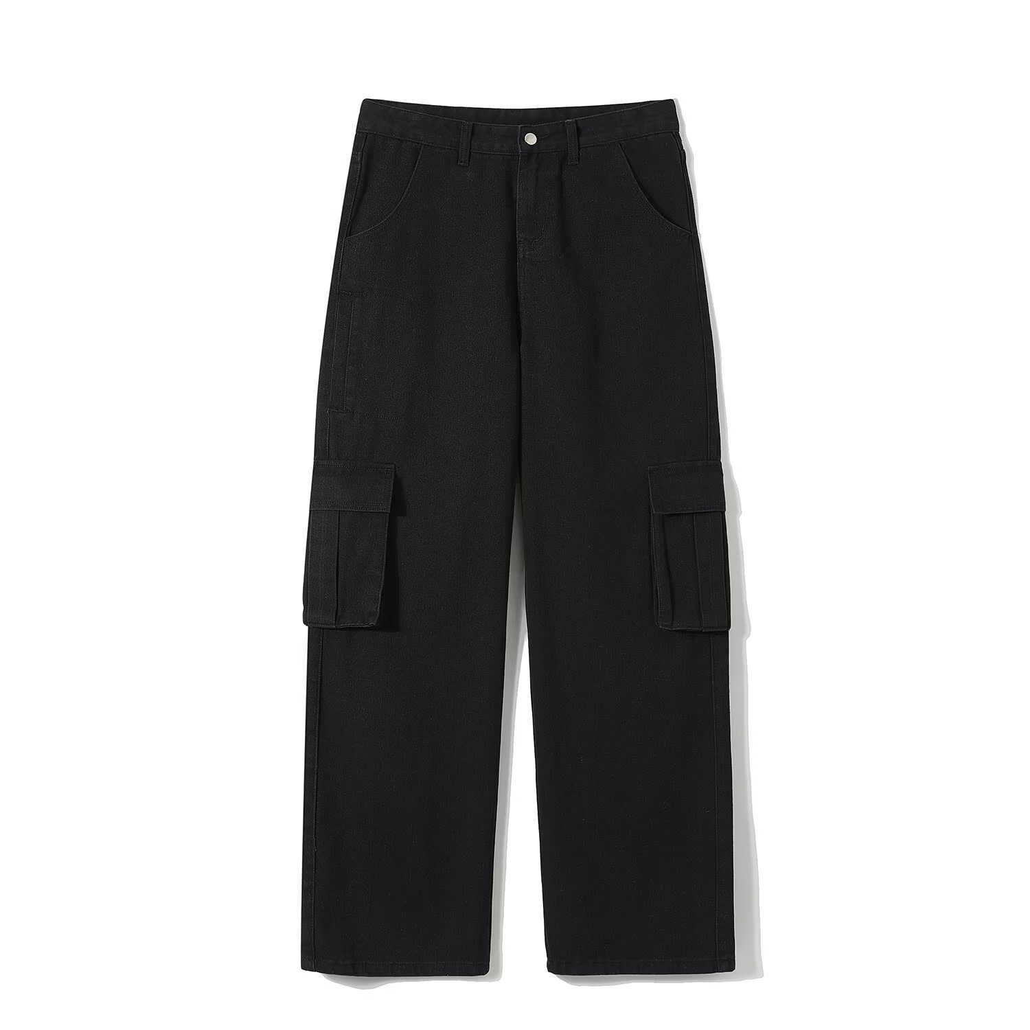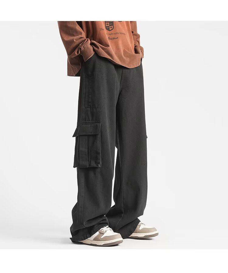 2025年春アメリカンハイストリートマルチポケットワークジーンズレディーストレンディなダメージ加工ストレートレッグ多用途ルーズワイドレッグパンツ