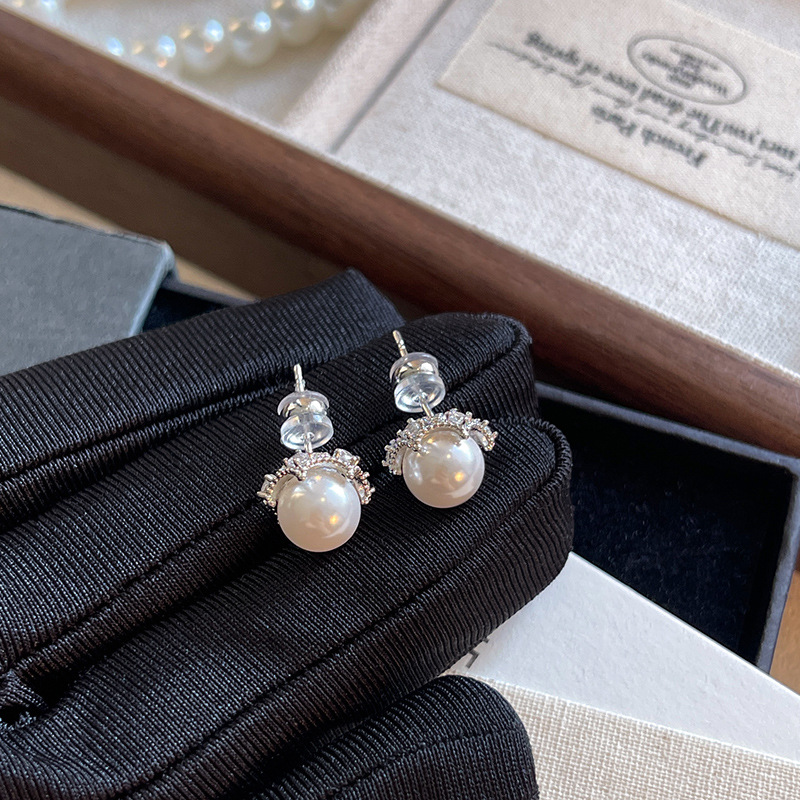 S925纯银针轻奢小众高级感S家珍珠耳钉女简约百搭气质镀白金耳环