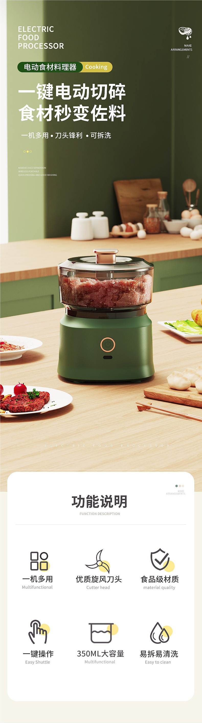 2024 新しい多機能調理機ワイヤレス電気肉グラインダー家庭用キッチンガーリックマッシャーベビーフードサプリメントマシン