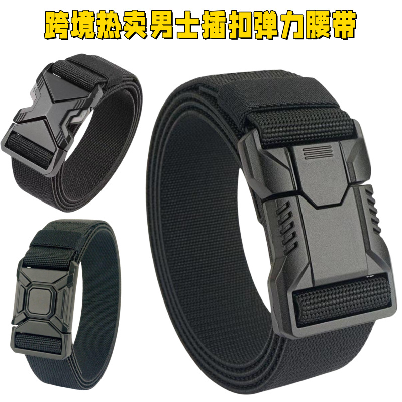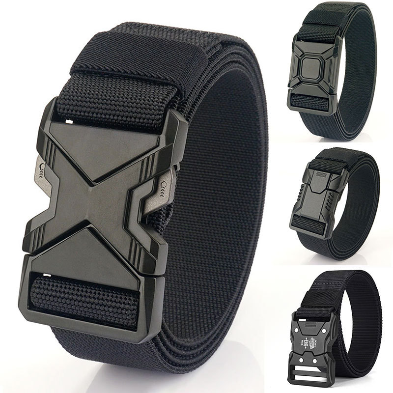 国境を越えて人気のナイロンキャンバス戦術ベルト メンズ カジュアル 自動バックル アウトドア作業用伸縮性編み込みベルト