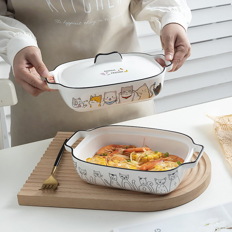 焼き皿蓋付きチーズ焼きボウル陶磁器ネット赤新商品両耳焼きボウル電子レンジ皿長方形家庭用料理皿