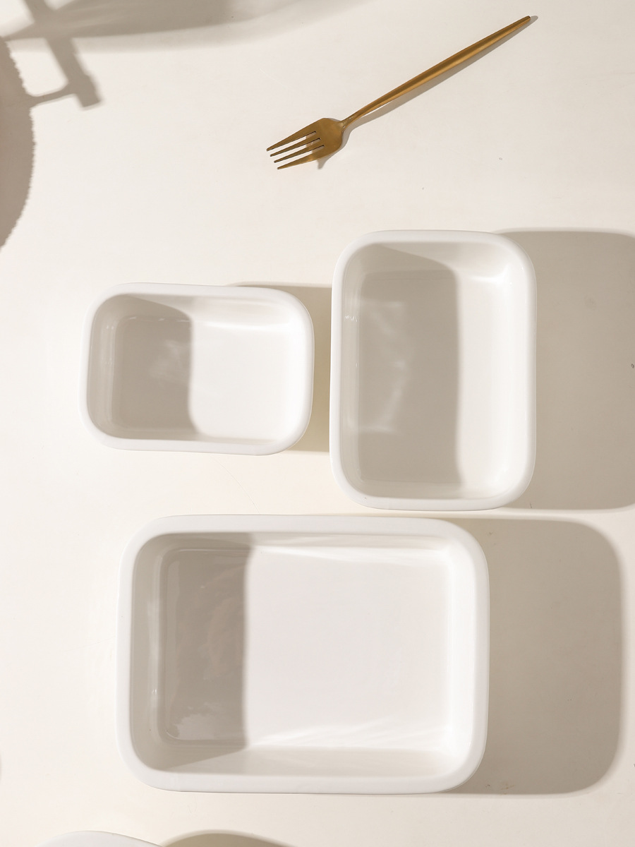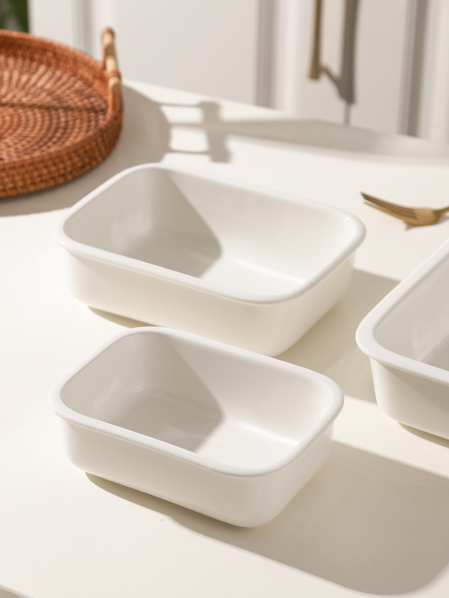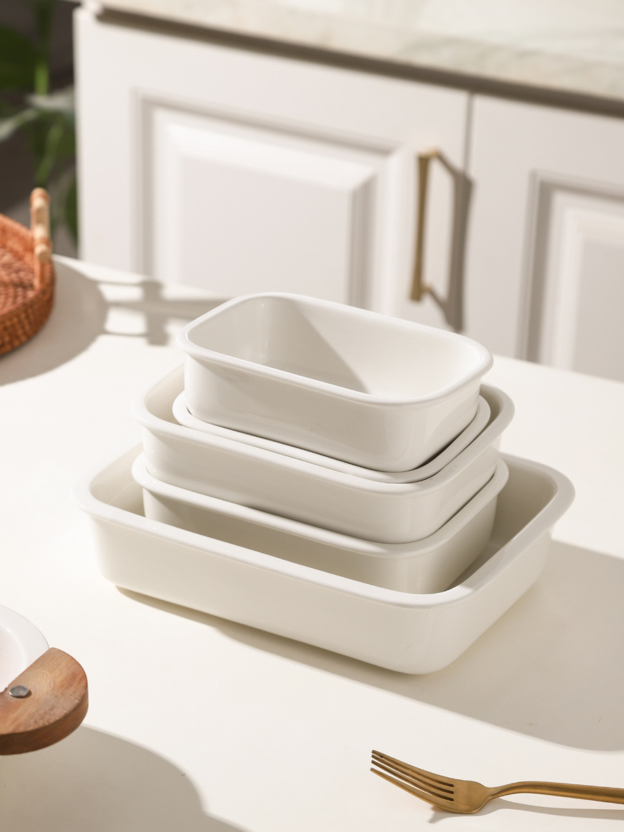 北欧シンプルな純白長方形の両耳焼き皿陶磁器家庭用オーブン皿グラタン皿パスタ皿サラダ皿