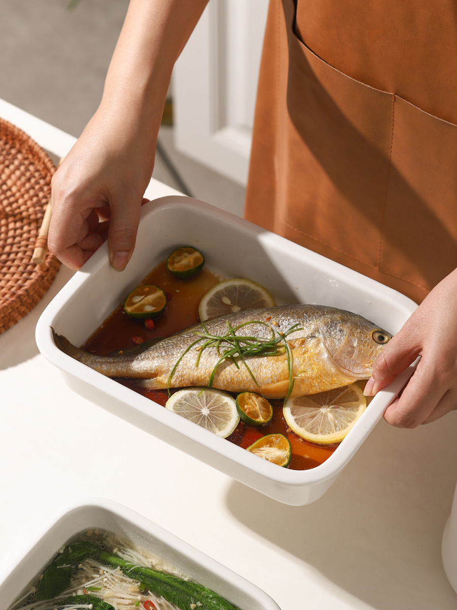 蒸し器専用ボウル、蒸し皿、焼き飯皿、電子レンジ専用陶器天板、オーブン長方形蒸し魚皿、焼き丼