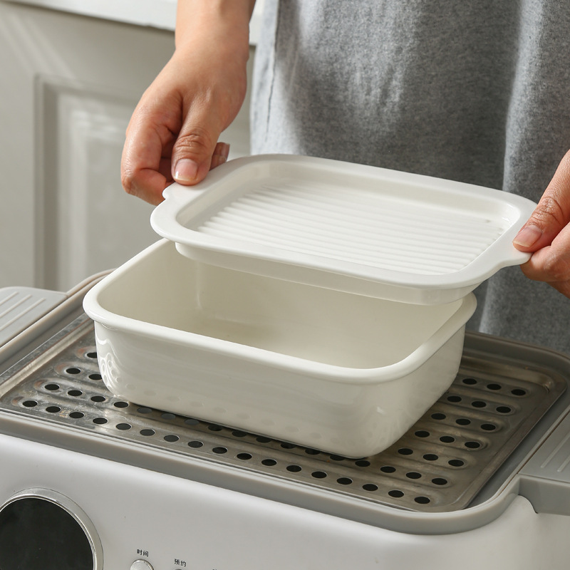 蓋付き卸売蒸しボウル家庭用セラミック長方形深皿電子レンジ焼き丼電気蒸し器蒸し