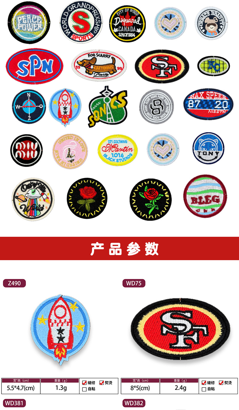 カスタムタオル刺繍ロゴ、各種衣料品・バッグ刺繍ラベル、オーダーメイド刺繍ワッペン、カスタム刺繍布ラベル