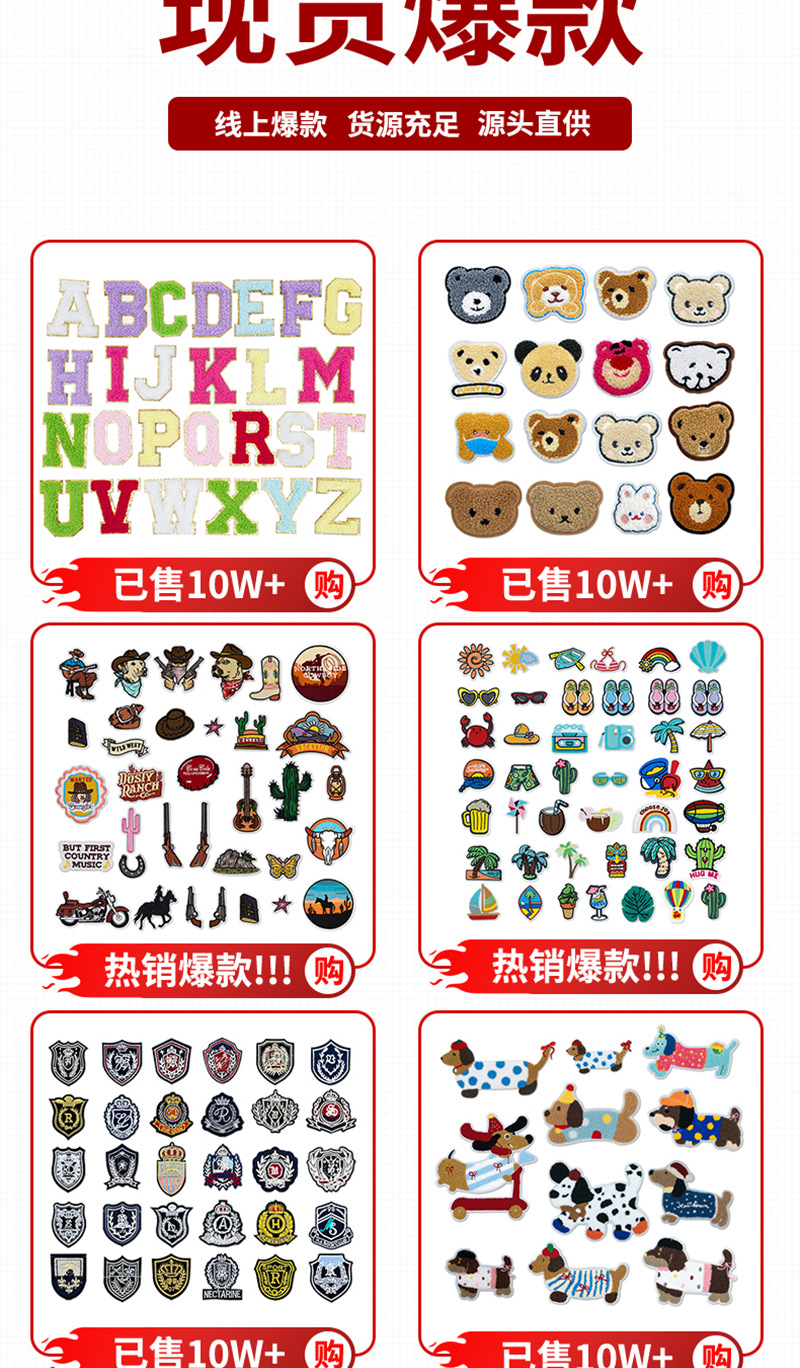 Amazon 売れ筋グリット自己粘着パッチステッカーレタータオル刺繍布ステッカー衣類アクセサリー刺繍ステッカークロスボーダー