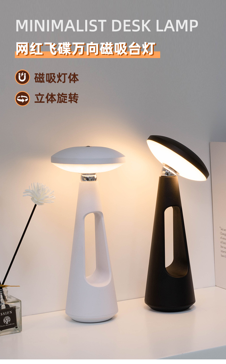 可旋转万向磁吸飞碟桌面台灯夜灯床头轻奢高级感氛围灯亚马逊摆件