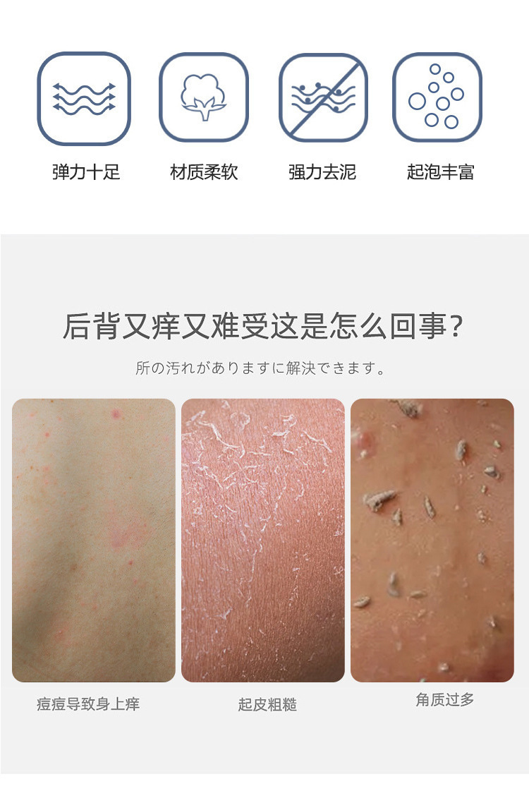 ネットバスストリップ、バスタオル、除染便利なロングナイロンバスボールバスタオル