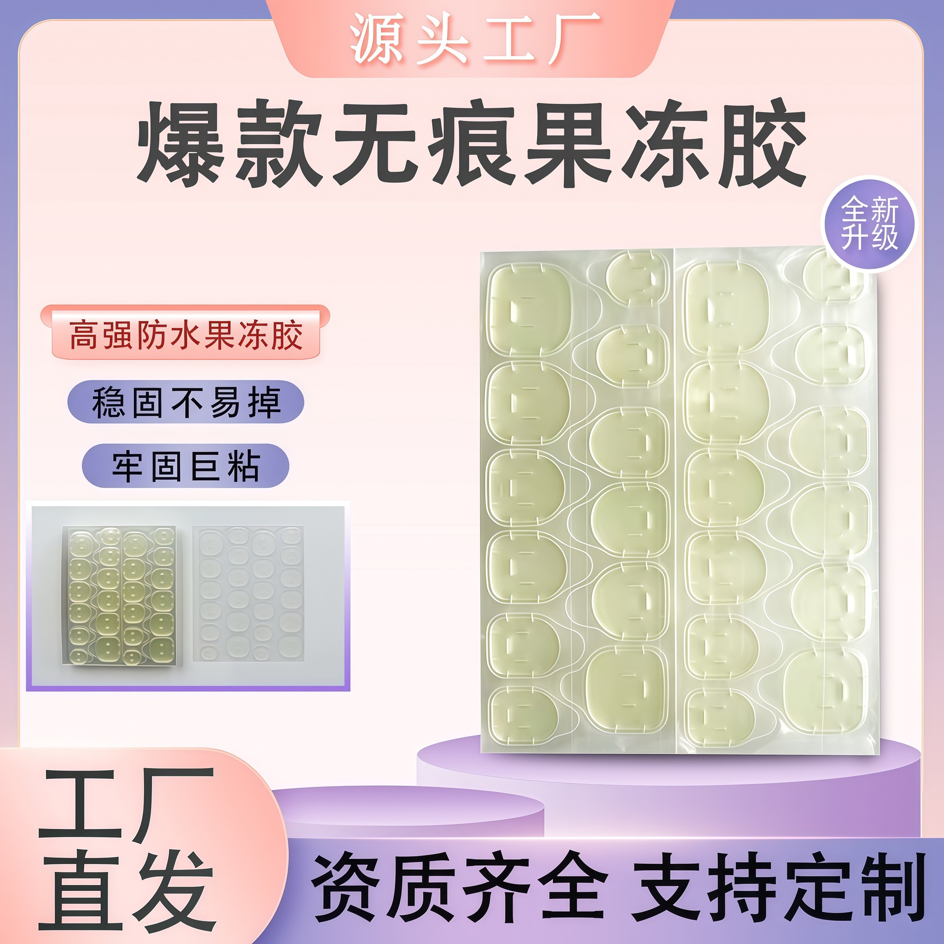 新バージョンのピンクの薄いウェアラブルネイルゼリー両面テープウェアラブル接着剤透明ゼリー接着剤は爪を傷つけず、透明で取り外しが簡単です