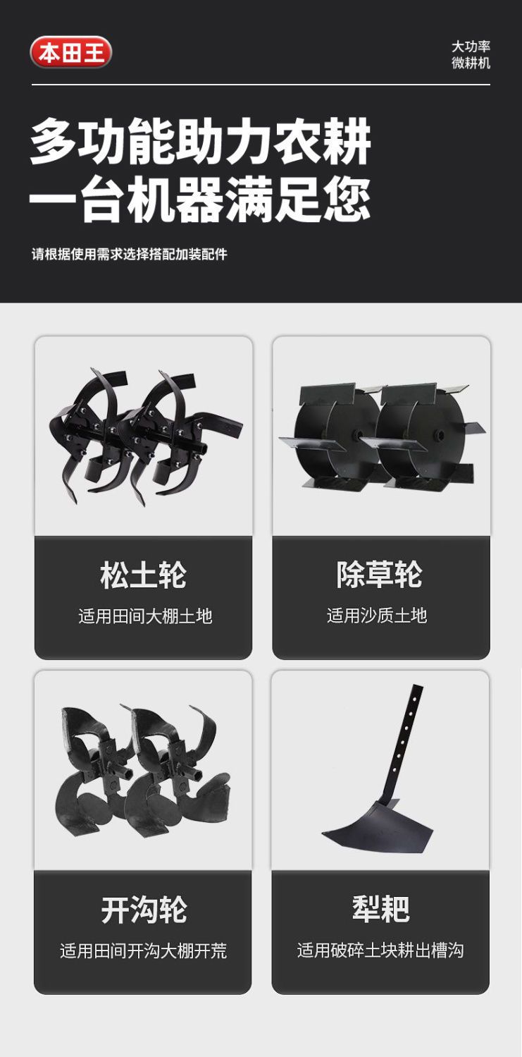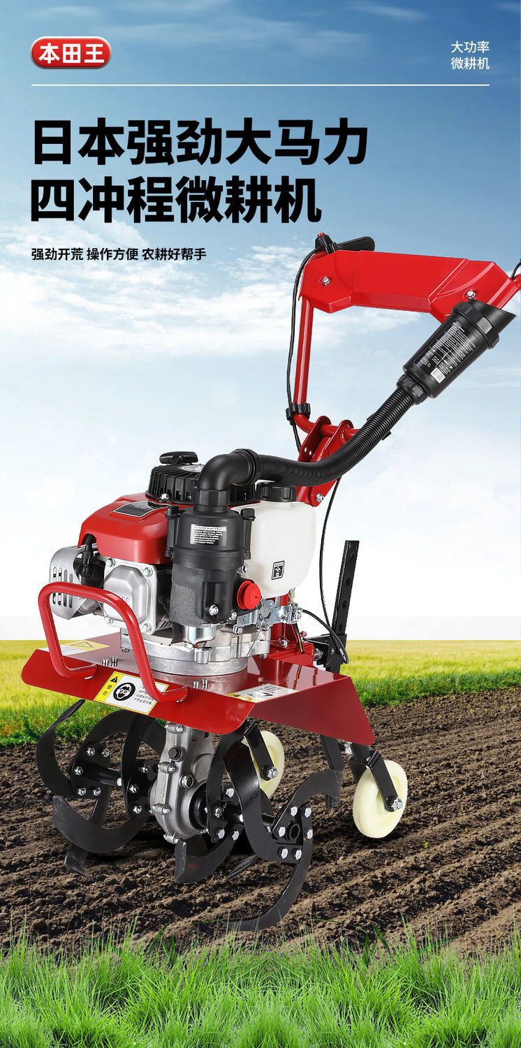 本田王微耕機小型ガソリン家庭用4サイクル松土水田鍬草開溝開地荒地耕耘機
